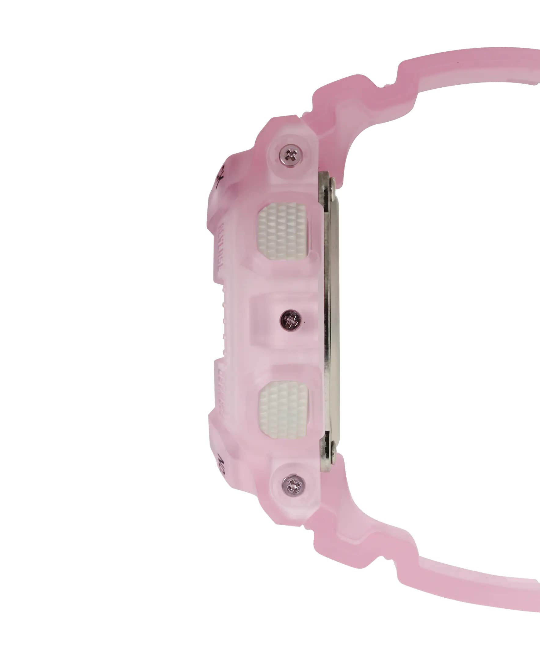 Лимитированные женские ударопрочныеУдаропрочный корпусМеханизм заключён в корпус, выполненный из современных материалов, устойчивых к ударам, механическим повреждениям и падению с высоты: инновационный пластик, карбон, нержавеющая сталь, титан. японские часы с секундомеромСекундомерСекундоме́р — прибор, способный измерять интервалы времени с точностью до долей секунды. Casio G-Shock GMA-S140NP-4A, кварцевый механизм с высокой точностью. Класс водозащиты: 200 метров, позволит плавать, нырять и заниматься другими водными видами спорта. Корпус часов изготовлен из пластика. Автоматическая светодиодная подсветкаСветодиодная подсветкаСветодиодная или LED-подсветка обеспечивает появление яркого холодного свечения за счёт LED-элементов - маленьких лампочек. Они потребляют минимальное количество энергии, чаще всего можно встретить 1 светодиод, в нижней части циферблата.. Функция мирового времениМировое время Полезное часовое усложнение, отображающее время в основных городах и известных областях по всему миру, оно связано с часовыми поясами, удобно для путешественников и бизнесменов. : 29 часовых зон (48 городов). СекундомерСекундомерСекундоме́р — прибор, способный измерять интервалы времени с точностью до долей секунды. с точностью показаний 1/1000 секунды и пределом измерения 100 часов. ТаймерТаймерОтсчитывает секунды в обратном направлении в заданном интервале времени. на 24 часа с автоповтором - время можно предварительно настроить от 1 минуты и до 24 часов. 5 ежедневных независимых будильниковБудильникБуди́льник — часы, в заданный момент времени подающие звуковой, световой и/или в редких случаях другой сигнал., один с функцией автоповтора. Розовый ремешок выполнен из полимерного материала, стандартная застежка. Минеральное стеклоМинеральное стеклоМинеральное стекло представляет собой искусственно выращенный минерал кварца. Такое стекло отличается особой устойчивостью к повреждениям и царапинам. Уступает по некоторым качествам сапфировому стеклу. устойчивое к мелким механическим повреждениям.