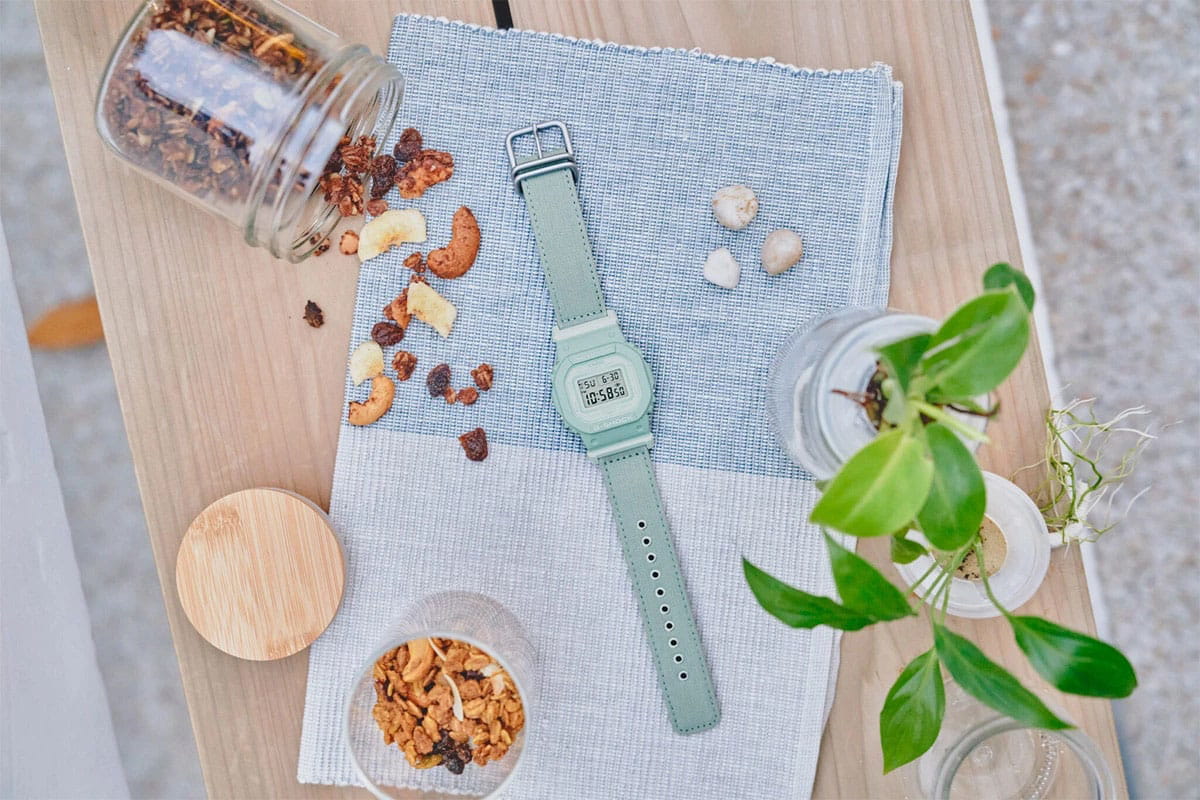 Японские женские часы-хронографХронографФункция позволяет измерять отрезки времени с особой точностью: часы, минуты, секунды. Верным признаком хронографа является наличие на циферблате 3 дополнительных окошек-счётчиков. Casio G-Shock GMD-S5600CT-3DR (GMD-S5600CT-3). Смелые и красивые, в потрясающем цвете. Минеральное стеклоМинеральное стеклоМинеральное стекло представляет собой искусственно выращенный минерал кварца. Такое стекло отличается особой устойчивостью к повреждениям и царапинам. Уступает по некоторым качествам сапфировому стеклу. устойчивое к появлению царапин, обладающее высокой прозрачностью. Ударопрочный корпусУдаропрочный корпусМеханизм заключён в корпус, выполненный из современных материалов, устойчивых к ударам, механическим повреждениям и падению с высоты: инновационный пластик, карбон, нержавеющая сталь, титан. защищает механизм от ударов и вибрации. Светодиодная подсветкаСветодиодная подсветкаСветодиодная или LED-подсветка обеспечивает появление яркого холодного свечения за счёт LED-элементов - маленьких лампочек. Они потребляют минимальное количество энергии, чаще всего можно встретить 1 светодиод, в нижней части циферблата. освещает весь циферблат, после отпускания кнопки свечение продолжается еще некоторое время. Настраиваемое послесвечение 1,5 или 3сек. СекундомерСекундомерСекундоме́р — прибор, способный измерять интервалы времени с точностью до долей секунды.. ТаймерТаймерОтсчитывает секунды в обратном направлении в заданном интервале времени.. 5 ежедневных будильников. Почасовой сигнал времени. Вечный календарьВечный календарьКлассическое часовое усложнение, представляющее собой календарь, рассчитанный на несколько лет вперёд (стандартно – до 2099 года). Определяет текущую дату, день недели, месяц.. Класс водозащиты: 200 метров, позволит плавать, нырять и заниматься другими водными видами спорта. Тканевый ремешок TrueCotton.