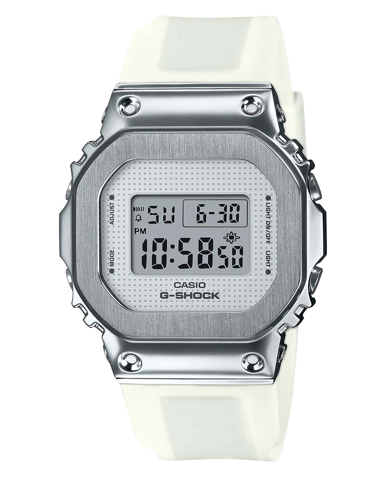 Японские женские часы GM-S5600SK-7 из коллекции G-Shock позволят чувствовать себя на высоте в любой ситуации, стильный аксессуар подчеркнёт вашу разборчивость и тонкий вкус. Дизайнеры оснастили модель узнаваемым легендарным ударопрочным корпусомУдаропрочный корпусМеханизм заключён в корпус, выполненный из современных материалов, устойчивых к ударам, механическим повреждениям и падению с высоты: инновационный пластик, карбон, нержавеющая сталь, титан., эксклюзивной деталью стал безельБезельВнешний ободок, закрепляющий стекло. В спортивных часах так называется поворотное кольцо с делениями на циферблате, выполняет роль таймера – замеряет отрезки времени на шкале. Неподвижный безель – элемент декора. Однонаправленно вращающийся безель на дайверских часах позволяет фиксировать моменты погружения и выныривания на поверхность. из нержавеющей стали. Такое исполнение в несколько раз повысило устойчивость к ударам и повреждениям с сохранением лёгкого веса. Кварцевый японский механизм работает от батарейки, рассчитанной на 2 года. Упрощённый и быстрый механизм замены ремешка. Электролюминесцентная подсветкаЭлектролюминесцентная подсветкаЭлектролюминесцентная панель устанавливается под ЖК-экраном часов, при нажатии кнопки электричество преобразуется в свет за счёт подачи напряжения на атомы фосфора, такой тип подсветки позволяет освещать весь циферблат. сине-зелёного цвета. Минеральное стекло. Водонепроницаемость 200 метров. Дополнительные возможности: будильникБудильникБуди́льник — часы, в заданный момент времени подающие звуковой, световой и/или в редких случаях другой сигнал. со световым сигналом, хронографХронографФункция позволяет измерять отрезки времени с особой точностью: часы, минуты, секунды. Верным признаком хронографа является наличие на циферблате 3 дополнительных окошек-счётчиков., автоматический вечный календарьВечный календарьКлассическое часовое усложнение, представляющее собой календарь, рассчитанный на несколько лет вперёд (стандартно – до 2099 года). Определяет текущую дату, день недели, месяц. до 2039 года, мировое времяМировое время Полезное часовое усложнение, отображающее время в основных городах и известных областях по всему миру, оно связано с часовыми поясами, удобно для путешественников и бизнесменов. , секундомерСекундомерСекундоме́р — прибор, способный измерять интервалы времени с точностью до долей секунды., таймер с автоповтором.
