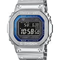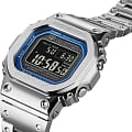 Перед вами супер-лимитированный релиз второй половины 2024 года от Casio! Легендарный олдскульный корпус GMW-B5000, облаченный в классическую сталь с яркой синей рамкой вокруг дисплея, окрашенной с помощью специальной технологии вакуумного лазерного напыления. Премиальные наручные часы серебристой расцветки, напоминающие ретро-модели от Casio, имеют противоударный корпусУдаропрочный корпусМеханизм заключён в корпус, выполненный из современных материалов, устойчивых к ударам, механическим повреждениям и падению с высоты: инновационный пластик, карбон, нержавеющая сталь, титан., благодаря безупречной полировке он выглядит хромированным. БезельБезельВнешний ободок, закрепляющий стекло. В спортивных часах так называется поворотное кольцо с делениями на циферблате, выполняет роль таймера – замеряет отрезки времени на шкале. Неподвижный безель – элемент декора. Однонаправленно вращающийся безель на дайверских часах позволяет фиксировать моменты погружения и выныривания на поверхность. имеет естественную стальную структуру. Слой материала Alpha Gel® обеспечивает дополнительную устойчивость к ударам и повреждениям, завинчивающаяся задняя крышка имеет защитное DLC-покрытиеDLC-покрытиеDiamond like carbon - одно из лучших видов покрытия, представляющее собой углерод с алмазными свойствами. На поверхность материала наносятся распавшиеся молекулы углерода, превращающиеся в плёнку из алмазоподобных связей, которая перенимает твёрдость алмаза.. Модель оснащена богатым функционалом: BluetoothBluetoothСовременная технология, позволяющая синхронизировать часы с телефоном и переносить данные. Часы с Bluetooth расширяют возможности вашего смартфона и делают его использование ещё более удобным., таймерТаймерОтсчитывает секунды в обратном направлении в заданном интервале времени., функция поиска телефона, UTCUTCВсемирное кординационное время, не имеющее привязки к географическому положению Гринвича, основывается на атомном отсчёте времени. Регулировка времени осуществляется более точно, чем устаревшее GMT.