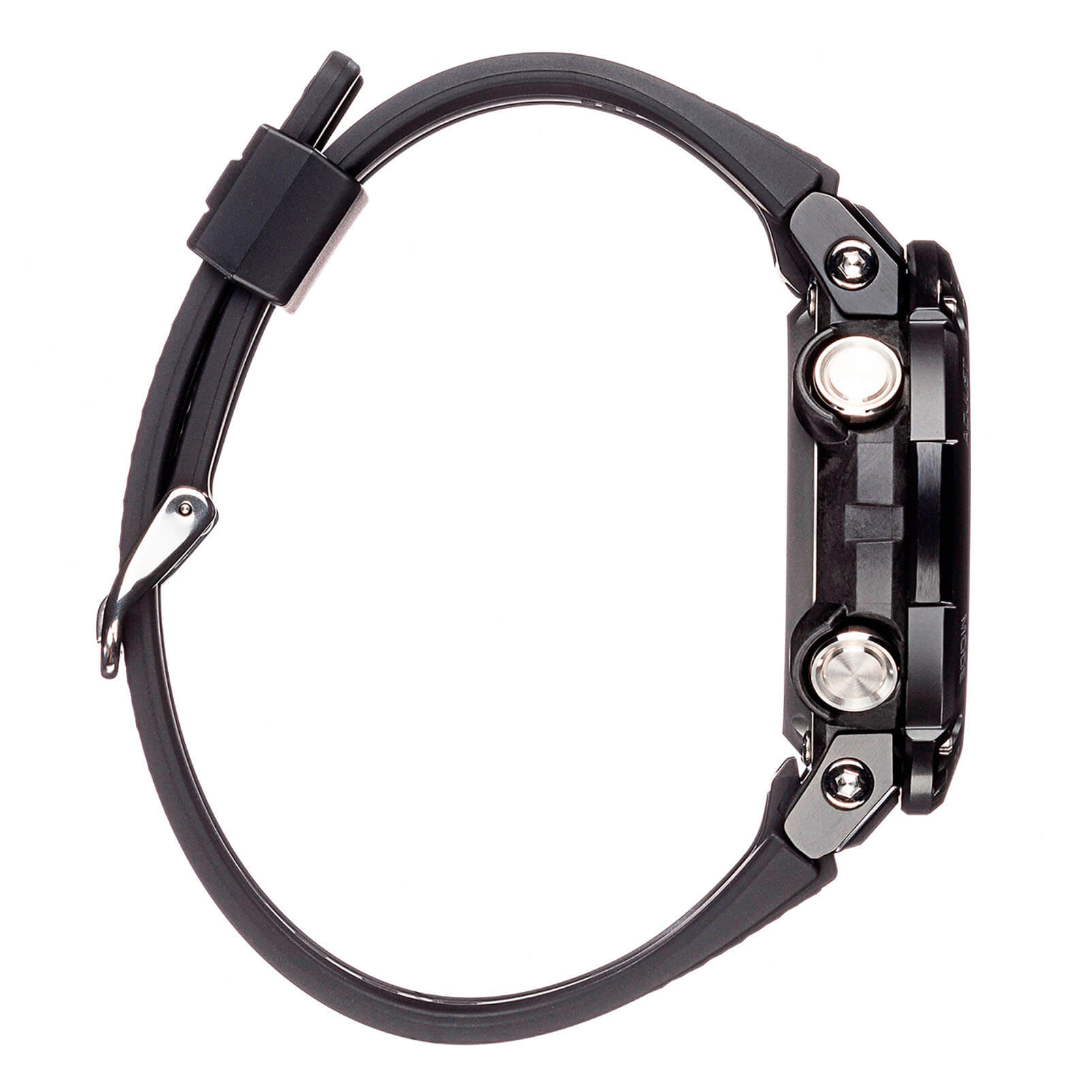 Наручные часы в тёмной расцветке помогут всегда находиться в центре внимания, они станут выигрышной деталью любого образа. Разработчики Casio выбрали для этой модели обновлённый противоударный корпусУдаропрочный корпусМеханизм заключён в корпус, выполненный из современных материалов, устойчивых к ударам, механическим повреждениям и падению с высоты: инновационный пластик, карбон, нержавеющая сталь, титан., реализовав технологию Carbon Core GuardCarbon Core Guard Новейшая структура корпуса, разработанная Casio. Полиуретановая пластина дополнительно усилена карбоновыми вставками, что придаёт специальную защиту от механических повреждений. Карбон отличается лёгкостью и прочностью.. Часы на солнечной батарее станут идеальным спутником в любой ситуации. Двойная подсветка - люминесцентнаяЛюминесцентное покрытиеПозволяет считывать показания времени в темноте. Производители наносят на стрелки, часовые индексы, безель или поверхность циферблата светонакопительный состав, дающий холодное свечение. и светодиодная Светодиодная подсветкаСветодиодная или LED-подсветка обеспечивает появление яркого холодного свечения за счёт LED-элементов - маленьких лампочек. Они потребляют минимальное количество энергии, чаще всего можно встретить 1 светодиод, в нижней части циферблата.. Ремешок из полимерного материала. БезельБезельВнешний ободок, закрепляющий стекло. В спортивных часах так называется поворотное кольцо с делениями на циферблате, выполняет роль таймера – замеряет отрезки времени на шкале. Неподвижный безель – элемент декора. Однонаправленно вращающийся безель на дайверских часах позволяет фиксировать моменты погружения и выныривания на поверхность. из нержавеющей стали 316L с IP-покрытиемIP-покрытиеМетод ионного напыления. Демонстрирует повышенную устойчивость к истиранию, окислению и химическим веществам. Под воздействием высокого давления и температуры около 1500°C молекулы металла надёжно соединяются с частицами корпуса часов.. Минеральное стекло. Индикатор состояния заряда батарейки. Функции: BluetoothBluetoothСовременная технология, позволяющая синхронизировать часы с телефоном и переносить данные. Часы с Bluetooth расширяют возможности вашего смартфона и делают его использование ещё более удобным., будильник, секундомер, таймер, мировое времяМировое время Полезное часовое усложнение, отображающее время в основных городах и известных областях по всему миру, оно связано с часовыми поясами, удобно для путешественников и бизнесменов. , автоматический календарь. Габариты: 53,9 x 49,2 x 14,5 мм.