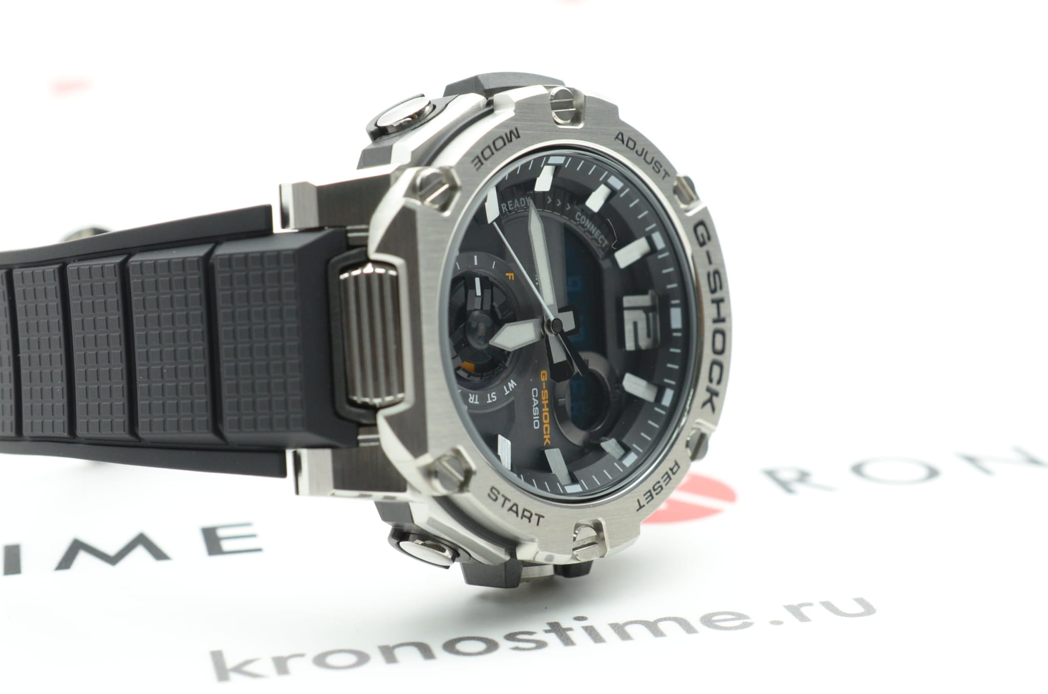 Корпус имеет структуру Carbon Core GuardCarbon Core Guard Новейшая структура корпуса, разработанная Casio. Полиуретановая пластина дополнительно усилена карбоновыми вставками, что придаёт специальную защиту от механических повреждений. Карбон отличается лёгкостью и прочностью., что говорит о повышенной ударопрочности. БезельБезельВнешний ободок, закрепляющий стекло. В спортивных часах так называется поворотное кольцо с делениями на циферблате, выполняет роль таймера – замеряет отрезки времени на шкале. Неподвижный безель – элемент декора. Однонаправленно вращающийся безель на дайверских часах позволяет фиксировать моменты погружения и выныривания на поверхность. изготовлен из стали 316L. Японский кварцевый механизм отличается высокой точностью хода 15 +/- секунд в месяц. Часы оснащены инновационной технологией , синхронизация со смартфоном происходит с помощью BluetoothBluetoothСовременная технология, позволяющая синхронизировать часы с телефоном и переносить данные. Часы с Bluetooth расширяют возможности вашего смартфона и делают его использование ещё более удобным.. Возможности: двойная автоматическая подсветка, мировое времяМировое время Полезное часовое усложнение, отображающее время в основных городах и известных областях по всему миру, оно связано с часовыми поясами, удобно для путешественников и бизнесменов. , будильник, хронографХронографФункция позволяет измерять отрезки времени с особой точностью: часы, минуты, секунды. Верным признаком хронографа является наличие на циферблате 3 дополнительных окошек-счётчиков., календарь, таймер.