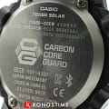 Корпус имеет структуру Carbon Core GuardCarbon Core Guard Новейшая структура корпуса, разработанная Casio. Полиуретановая пластина дополнительно усилена карбоновыми вставками, что придаёт специальную защиту от механических повреждений. Карбон отличается лёгкостью и прочностью., что говорит о повышенной ударопрочности. БезельБезельВнешний ободок, закрепляющий стекло. В спортивных часах так называется поворотное кольцо с делениями на циферблате, выполняет роль таймера – замеряет отрезки времени на шкале. Неподвижный безель – элемент декора. Однонаправленно вращающийся безель на дайверских часах позволяет фиксировать моменты погружения и выныривания на поверхность. и браслет изготовлены из стали 316L. Японский кварцевый механизм отличается высокой точностью хода 15 +/- секунд в месяц. Часы оснащены инновационной технологией , синхронизация со смартфоном происходит с помощью BluetoothBluetoothСовременная технология, позволяющая синхронизировать часы с телефоном и переносить данные. Часы с Bluetooth расширяют возможности вашего смартфона и делают его использование ещё более удобным.. Возможности: двойная автоматическая подсветка, мировое времяМировое время Полезное часовое усложнение, отображающее время в основных городах и известных областях по всему миру, оно связано с часовыми поясами, удобно для путешественников и бизнесменов. , будильник, хронографХронографФункция позволяет измерять отрезки времени с особой точностью: часы, минуты, секунды. Верным признаком хронографа является наличие на циферблате 3 дополнительных окошек-счётчиков., календарь, таймер.