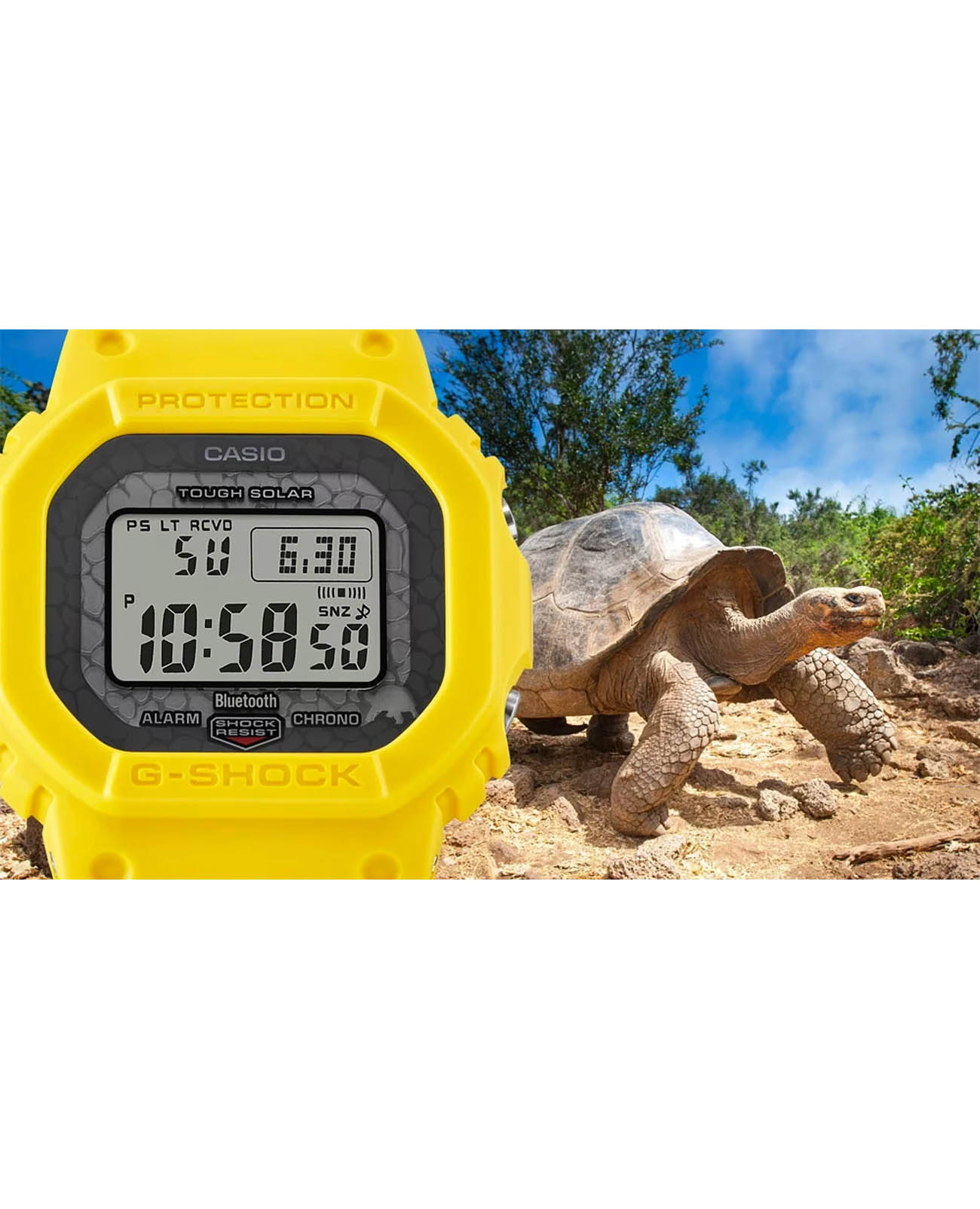 Японские мужские Casio G-Shock GW-B5600CD-9 из коллекции G-Shock. Редкая лимитированная модель — коллаборация G-Shock и Фонда имени Чарльза Дарвина в черном матовом корпусе GW-B5600. Коллаборация посвящена фауне Галапагосских островов, ведь именно там в 1835 году Чарльзу Дарвину пришла идея о его теории эволюции. Каждая из трех лимитированных моделей посвящена одному из редких обитателей животного мира архипелага. Минеральное стеклоМинеральное стеклоМинеральное стекло представляет собой искусственно выращенный минерал кварца. Такое стекло отличается особой устойчивостью к повреждениям и царапинам. Уступает по некоторым качествам сапфировому стеклу. устойчивое к появлению царапин, обладающее высокой прозрачностью. Ударопрочный корпусУдаропрочный корпусМеханизм заключён в корпус, выполненный из современных материалов, устойчивых к ударам, механическим повреждениям и падению с высоты: инновационный пластик, карбон, нержавеющая сталь, титан. из биопластика защищает механизм от ударов и вибрации. Tough SolarTough SolarТехнология основана на подзарядке аккумулятора от источника солнечного света, специальная панель улавливает солнечные лучи и преобразует их в энергию для работы часов. Достаточно пары минут нахождения на солнце для функционирования часов в течении суток.. Светодиодная подсветкаСветодиодная подсветкаСветодиодная или LED-подсветка обеспечивает появление яркого холодного свечения за счёт LED-элементов - маленьких лампочек. Они потребляют минимальное количество энергии, чаще всего можно встретить 1 светодиод, в нижней части циферблата. (Super illuminator) Полностью автоматическая светодиодная подсветка, выбираемая продолжительность подсветки (2 секунды или 4 секунды), послесвечение. Мировое времяМировое время Полезное часовое усложнение, отображающее время в основных городах и известных областях по всему миру, оно связано с часовыми поясами, удобно для путешественников и бизнесменов. – 39 городов (39 часовых поясов). СекундомерСекундомерСекундоме́р — прибор, способный измерять интервалы времени с точностью до долей секунды. с точностью измерения 1/100 секунды и измерением до 23 часов 59 минут 59,99 cек. ТаймерТаймерОтсчитывает секунды в обратном направлении в заданном интервале времени. обратного отсчета (диапазон времени 24 часа), автоматический календарь, 12/24 отображение времени. 5 будильниковБудильникБуди́льник — часы, в заданный момент времени подающие звуковой, световой и/или в редких случаях другой сигнал., ежечасный сигнал. Энергосбережение (дисплей гаснет для экономии энергии, когда часы остаются в темноте). Функция перемещения стрелок для беспрепятственного просмотра информации на цифровых дисплеях и отключения/включения звука. Класс водозащиты: 200 метров, позволит плавать, нырять и заниматься другими водными видами спорта. Ремешок из полимерного материала на стандартной застежке.