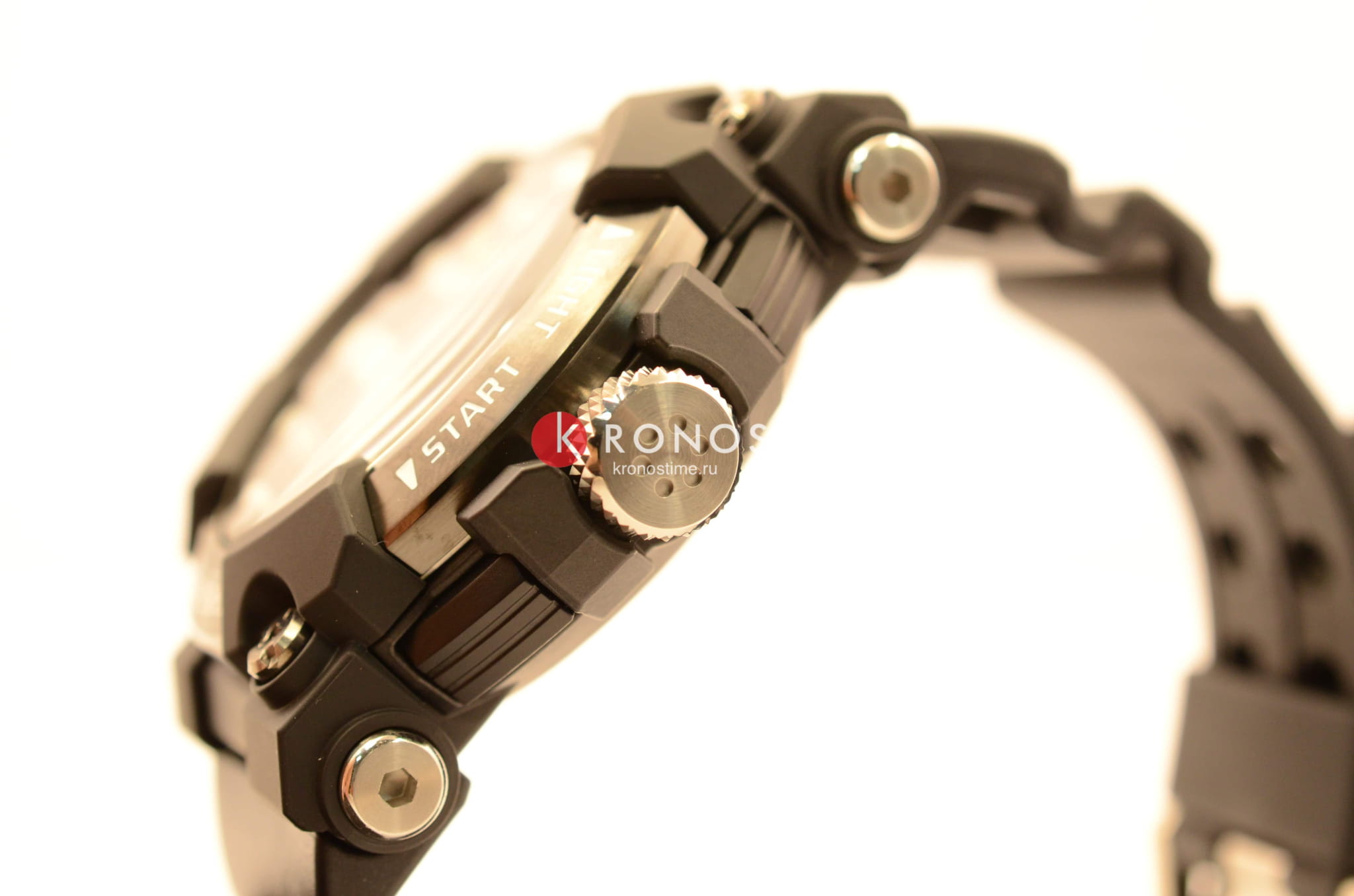 Карбоновый корпус и задняя поверхность часов представляют собой единую монолитную конструкцию. Выпуклое стекло часов спрессовано с металлическим кольцом, которое надежно крепится к корпусу шестью винтами, что обеспечивает высокую прочность часов и повышенную водостойкость. Также водостойкость обеспечивается тройными прокладками на стержнях кнопок.