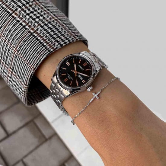 Японские женские часы из коллекции LTP изящно смотрятся на запястье, они привлекают классическим исполнением и правильной геометрией. Минималистичная модель станет отличным решением для любого случая: на работу, переговоры с деловыми партнёрами, прогулку с друзьями или праздничный вечер. Отсутствуют лишние детали, что позволяет часам быть актуальными на долгие годы. Циферблат с люминесцентным покрытиемЛюминесцентное покрытиеПозволяет считывать показания времени в темноте. Производители наносят на стрелки, часовые индексы, безель или поверхность циферблата светонакопительный состав, дающий холодное свечение. стрелок, дополнен минеральным стекломМинеральное стеклоМинеральное стекло представляет собой искусственно выращенный минерал кварца. Такое стекло отличается особой устойчивостью к повреждениям и царапинам. Уступает по некоторым качествам сапфировому стеклу. , устойчивым к мелким механическим повреждениям. Модель комплектуется надёжным механизмом, точность хода которого составляет +/- 20 сек/мес.