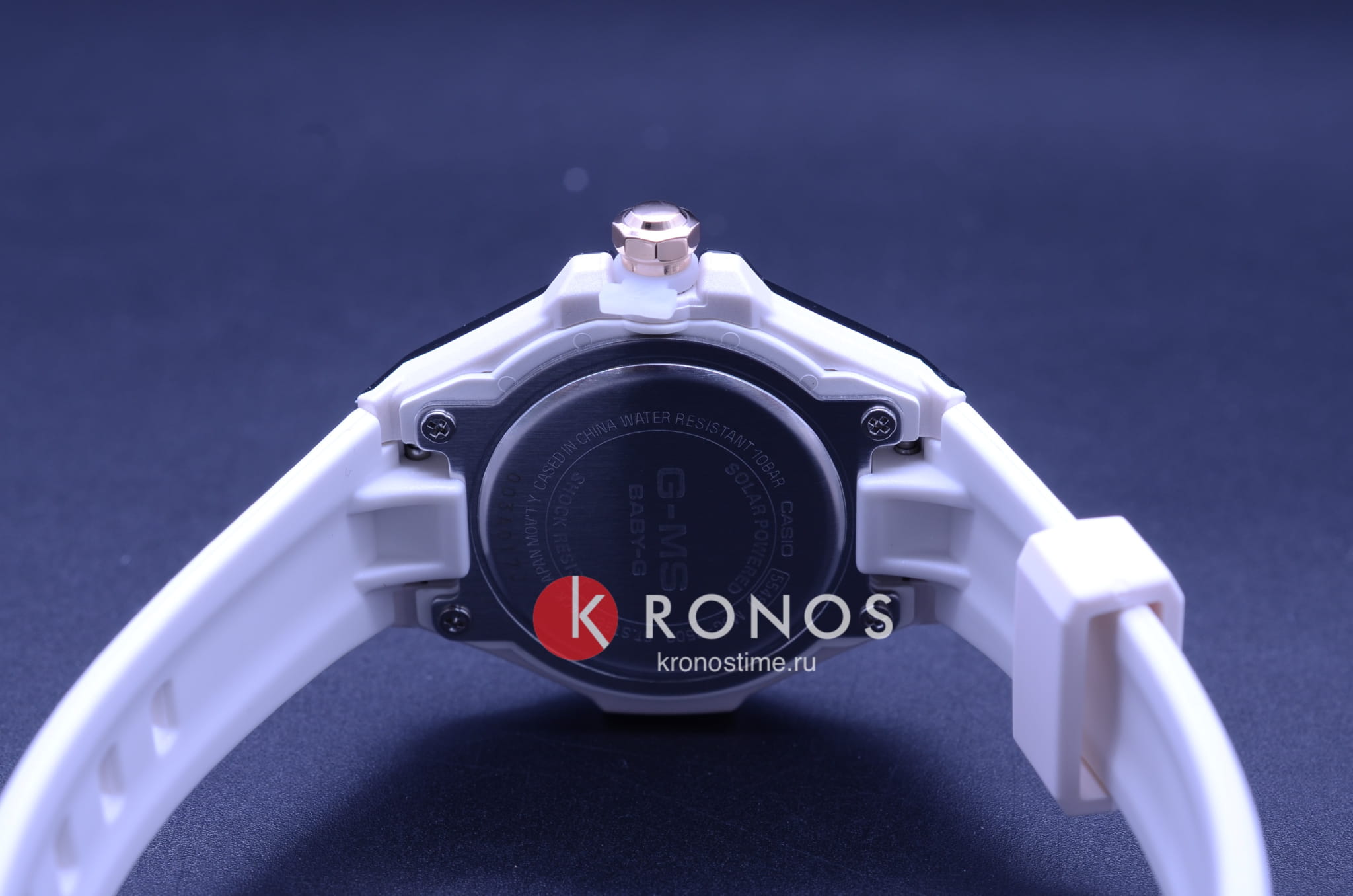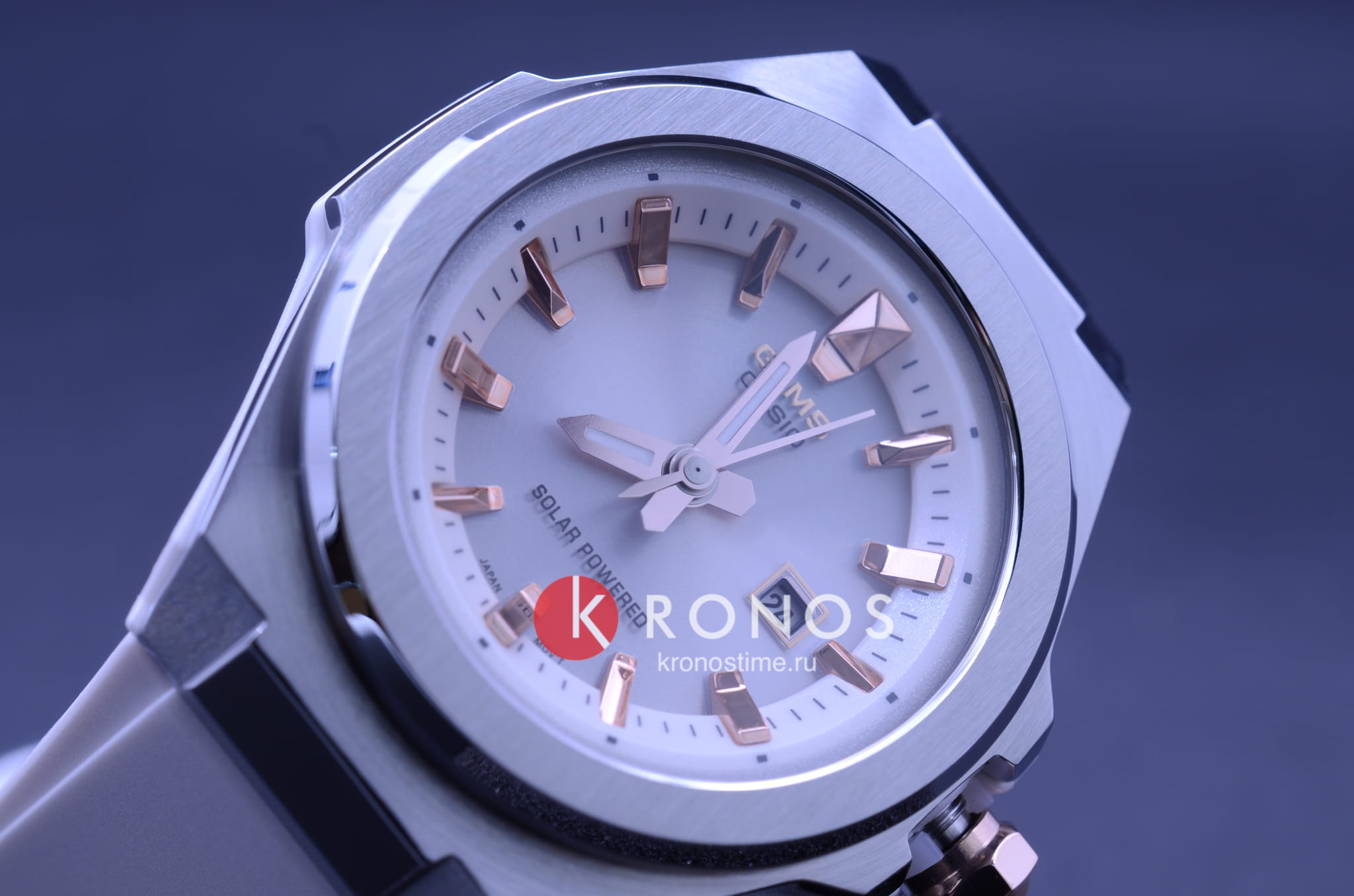 Женские японские часы Casio Baby-G MSG-S500-7AER из коллекции Baby-G стали отражением спортивного дизайна с элементами в стиле fashion. Модель сочетает несколько вариаций розового: металлизированные стрелки, индексы, заводная головка, пастельный оттенок полимерного ремешка. Такое исполнение поможет девушкам, ведущим активный образ жизни, не забывать о своей женственной натуре. Наручные часы реализуют технологию Tough SolarTough SolarТехнология основана на подзарядке аккумулятора от источника солнечного света, специальная панель улавливает солнечные лучи и преобразует их в энергию для работы часов. Достаточно пары минут нахождения на солнце для функционирования часов в течении суток., получая питание от солнца и искусственных источников света. При полностью зараженной батарейке японский кварцевый механизм способен проработать до 5 месяцев без подзарядки. Противоударный корпусУдаропрочный корпусМеханизм заключён в корпус, выполненный из современных материалов, устойчивых к ударам, механическим повреждениям и падению с высоты: инновационный пластик, карбон, нержавеющая сталь, титан. сделан из полимерного материала и нержавеющей стали 316L, что позволяет не бояться последствий ударов, падения. Циферблат оснащён минеральным стекломМинеральное стеклоМинеральное стекло представляет собой искусственно выращенный минерал кварца. Такое стекло отличается особой устойчивостью к повреждениям и царапинам. Уступает по некоторым качествам сапфировому стеклу., оно отличается прочностью, устойчивостью к образованию царапин. Завинчивающаяся заводная головка способствует усилению водостойкости до 10 бар. Стрелки покрыты светонакопительным люминесцентным составомЛюминесцентное покрытиеПозволяет считывать показания времени в темноте. Производители наносят на стрелки, часовые индексы, безель или поверхность циферблата светонакопительный состав, дающий холодное свечение.. На позиции 3 часов размещена апертура текущего числа. Габариты: 38,8 x 42,4 x 10,5 мм.