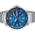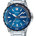 Мужские японские часы Casio Collection MTD-125D-2A1VDF (MTD-125D-2A1), кварцевый механизм с высокой точностью. Корпус изготовлен из нержавеющей стали. Поворотный безельБезельВнешний ободок, закрепляющий стекло. В спортивных часах так называется поворотное кольцо с делениями на циферблате, выполняет роль таймера – замеряет отрезки времени на шкале. Неподвижный безель – элемент декора. Однонаправленно вращающийся безель на дайверских часах позволяет фиксировать моменты погружения и выныривания на поверхность. из стали и пластика. Окошко даты на отметке 3 часа. Рифленая заводная головка. Класс водозащиты: 100 метров, позволит плавать, нырять и заниматься другими водными видами спорта. Стальной браслет на раскладной застёжкеРаскладная застёжкаТакой тип застёжки используется только на браслетах из металла. Она никогда не раскрывается полностью, происходит разделение на 2 и более частей. Раскладывающая застёжка снизит вероятность потери часов к минимуму..
