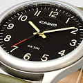 Японские мужские часы Casio Collection MTP-B160L-1B2V с минеральным стекломМинеральное стеклоМинеральное стекло представляет собой искусственно выращенный минерал кварца. Такое стекло отличается особой устойчивостью к повреждениям и царапинам. Уступает по некоторым качествам сапфировому стеклу., устойчивым к мелким механическим повреждениям. Корпус часов изготовлен из нержавеющей стали. Стрелки с люминесцентным покрытиемЛюминесцентное покрытиеПозволяет считывать показания времени в темноте. Производители наносят на стрелки, часовые индексы, безель или поверхность циферблата светонакопительный состав, дающий холодное свечение.. Задняя крышка с винтовым фиксатором. Батарейка рассчитана на 3 года. Класс водозащиты: 50 метров, позволит защитить корпус от случайных брызг или капель дождя. Кожаный ремешок на стандартной застежке.