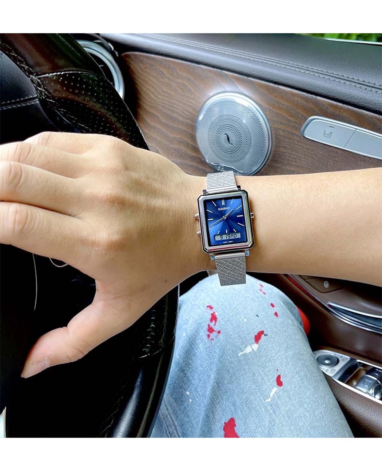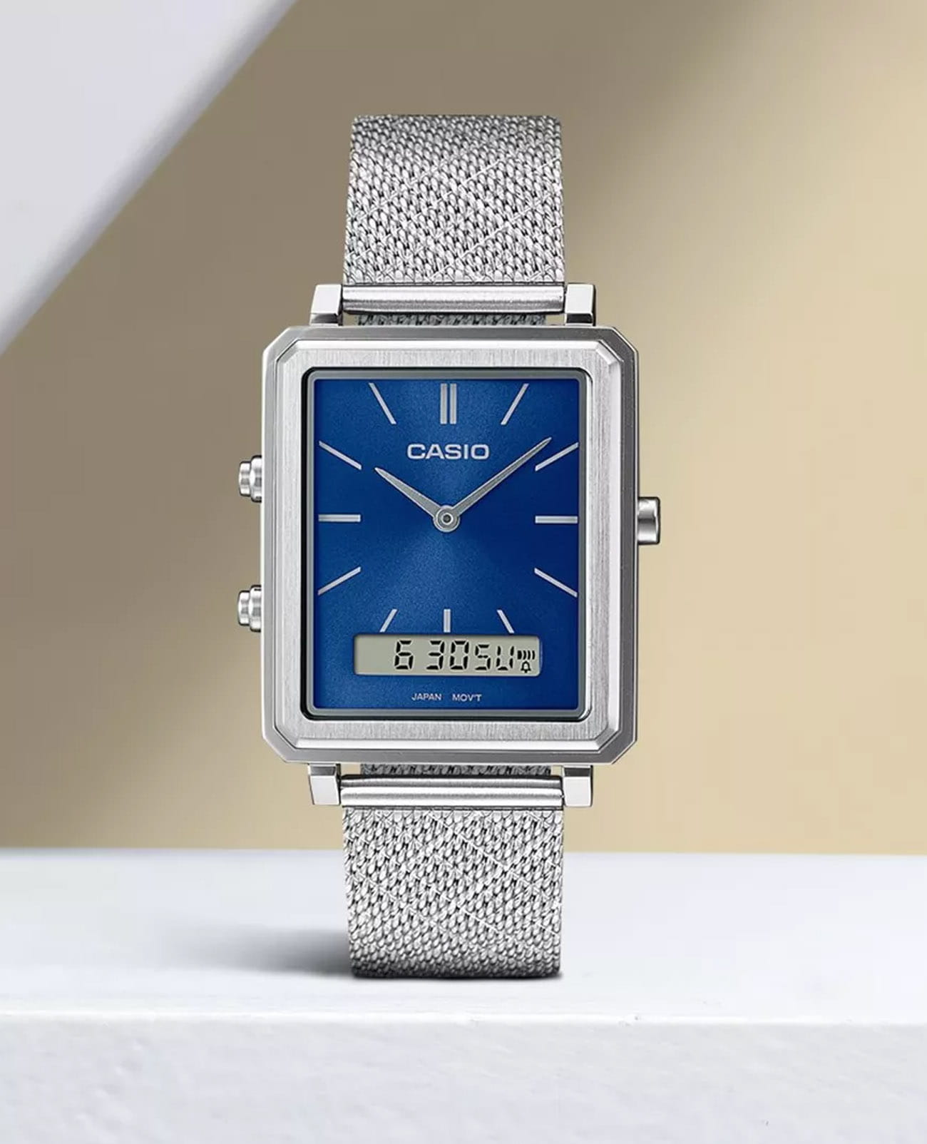 Японские мужские часы- хронографХронографФункция позволяет измерять отрезки времени с особой точностью: часы, минуты, секунды. Верным признаком хронографа является наличие на циферблате 3 дополнительных окошек-счётчиков. с минеральным стекломМинеральное стеклоМинеральное стекло представляет собой искусственно выращенный минерал кварца. Такое стекло отличается особой устойчивостью к повреждениям и царапинам. Уступает по некоторым качествам сапфировому стеклу. Casio Collection MTP-B205M-2EDF, кварцевый механизм с высокой точностью. Корпус часов изготовлен из стали. Мужские аналогово-цифровые часы. 12 и 24-часовой формат времени. СекундомерСекундомерСекундоме́р — прибор, способный измерять интервалы времени с точностью до долей секунды. с точностью показаний 1/100с и временем измерения 60мин. Второй часовой пояс. Циферблат с метками в виде штрихов. БудильникБудильникБуди́льник — часы, в заданный момент времени подающие звуковой, световой и/или в редких случаях другой сигнал., ежечасный сигнал. Батарея рассчитана на 3 года. Класс водозащиты: 50 метров, позволит защитить корпус от случайных брызг или капель дождя. Стальной браслет миланского плетения на раскладном замкеРаскладной замокДанный вариант застежки используется только на часах с металлическим браслетом. Отличительная особенность такого крепления в том, что длина браслета становится универсальной и вы можете самостоятельно отрегулировать нужный вам размер – застежка просто двигается по браслету часов..