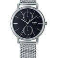 Японские мужские наручные часы с минеральным стекломМинеральное стеклоМинеральное стекло представляет собой искусственно выращенный минерал кварца. Такое стекло отличается особой устойчивостью к повреждениям и царапинам. Уступает по некоторым качествам сапфировому стеклу. Casio Collection MTP-B310M-1A, кварцевый механизм с высокой точностью. Класс водозащиты: 50 метров, позволит защитить корпус от случайных брызг или капель дождя. Корпус часов изготовлен из стали. Стальной браслет на раскладной застёжкеРаскладная застёжкаТакой тип застёжки используется только на браслетах из металла. Она никогда не раскрывается полностью, происходит разделение на 2 и более частей. Раскладывающая застёжка снизит вероятность потери часов к минимуму.. Циферблат с метками в виде штрихов выполнен по технологии Sunray (солнечные лучи). Число и день недели вынесены на отдельные циферблаты. Рифленая заводная головка. Браслет миланского плетения с регулируемой застежкой.