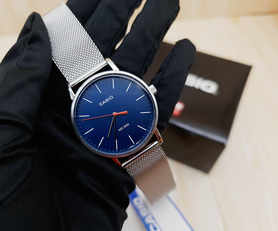 Японские мужские часы с минеральным стекломМинеральное стеклоМинеральное стекло представляет собой искусственно выращенный минерал кварца. Такое стекло отличается особой устойчивостью к повреждениям и царапинам. Уступает по некоторым качествам сапфировому стеклу. Casio Collection MTP-E171M-2E, кварцевый механизм с высокой точностью. Класс водозащиты: 50 метров, позволит защитить корпус от случайных брызг или капель дождя. Корпус часов изготовлен из стали. Стальной браслет на раскладной застёжкеРаскладная застёжкаТакой тип застёжки используется только на браслетах из металла. Она никогда не раскрывается полностью, происходит разделение на 2 и более частей. Раскладывающая застёжка снизит вероятность потери часов к минимуму..