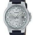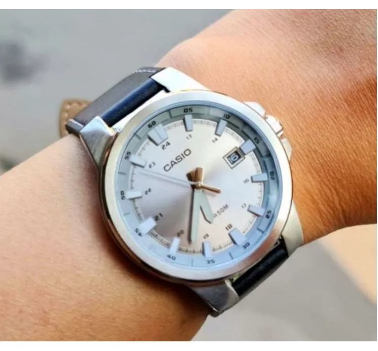 Японские мужские наручные часы с минеральным стекломМинеральное стеклоМинеральное стекло представляет собой искусственно выращенный минерал кварца. Такое стекло отличается особой устойчивостью к повреждениям и царапинам. Уступает по некоторым качествам сапфировому стеклу. Casio Collection MTP-E173L-7AVEF кварцевый механизм с высокой точностью. Окошко даты с увеличительным стеклом. Класс водозащиты: 50 метров, позволит защитить корпус от случайных брызг или капель дождя. Корпус часов изготовлен из нержавеющей стали. Стрелки и метки с люминесцентным покрытиемЛюминесцентное покрытиеПозволяет считывать показания времени в темноте. Производители наносят на стрелки, часовые индексы, безель или поверхность циферблата светонакопительный состав, дающий холодное свечение..
