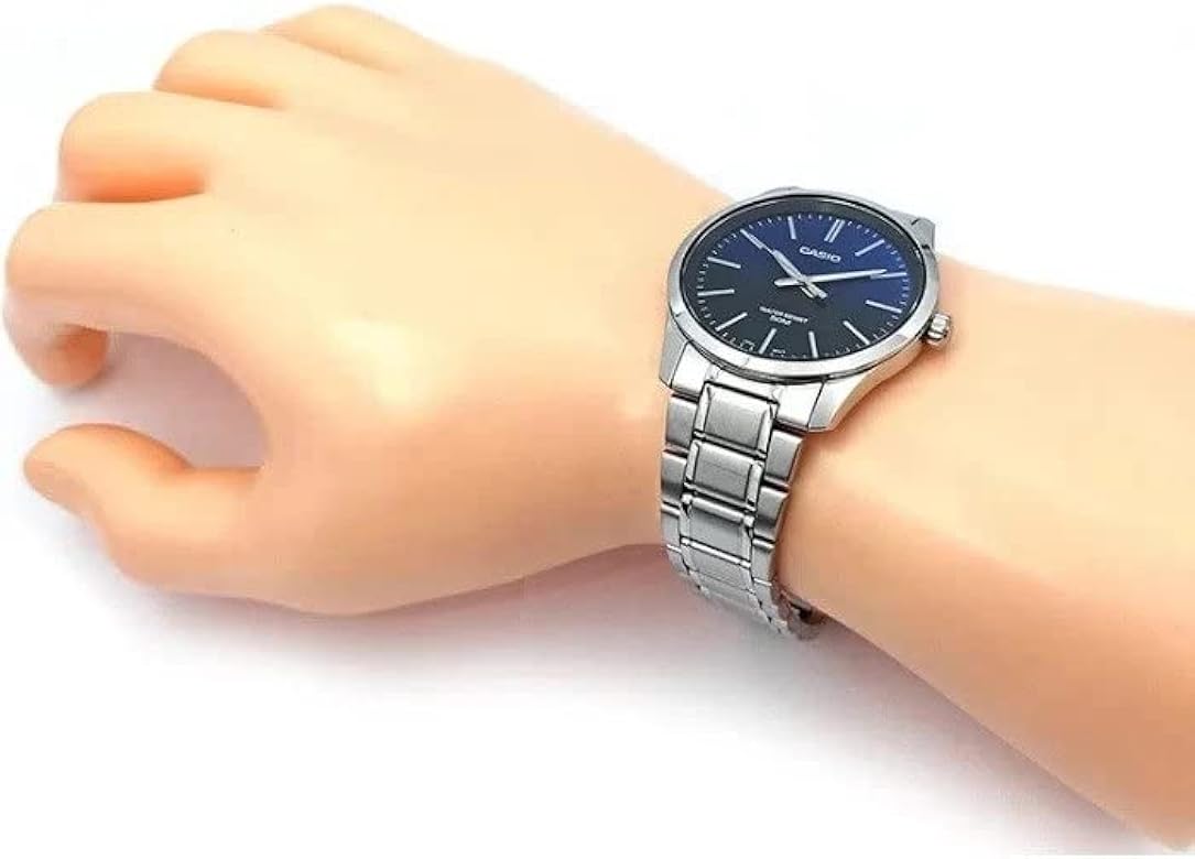 Японские мужские наручные часы с минеральным стекломМинеральное стеклоМинеральное стекло представляет собой искусственно выращенный минерал кварца. Такое стекло отличается особой устойчивостью к повреждениям и царапинам. Уступает по некоторым качествам сапфировому стеклу. Casio Collection MTP-E180D-2A, кварцевый механизм с высокой точностью. Окошко даты с увеличительным стеклом. Класс водозащиты: 50 метров, позволит защитить корпус от случайных брызг или капель дождя. Корпус часов изготовлен из стали. Стальной браслет на раскладной застёжкеРаскладная застёжкаТакой тип застёжки используется только на браслетах из металла. Она никогда не раскрывается полностью, происходит разделение на 2 и более частей. Раскладывающая застёжка снизит вероятность потери часов к минимуму..