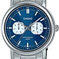 Японские мужские часы с минеральным стекломМинеральное стеклоМинеральное стекло представляет собой искусственно выращенный минерал кварца. Такое стекло отличается особой устойчивостью к повреждениям и царапинам. Уступает по некоторым качествам сапфировому стеклу. Casio Collection MTP-E335D-2E1V, кварцевый механизм с высокой точностью. Корпус часов изготовлен из нержавеющей стали. Циферблат выполнен по технологии Sunray (солнечные лучи). Метки в виде штрихов. Заводная головка с защитой. Батарейка рассчитана на 3 года. Класс водозащиты: 50 метров, позволит защитить корпус от случайных брызг или капель дождя. Стальной браслет на раскладной застёжкеРаскладная застёжкаТакой тип застёжки используется только на браслетах из металла. Она никогда не раскрывается полностью, происходит разделение на 2 и более частей. Раскладывающая застёжка снизит вероятность потери часов к минимуму..