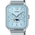 Японские мужские кварцевые часы с минеральным стекломМинеральное стеклоМинеральное стекло представляет собой искусственно выращенный минерал кварца. Такое стекло отличается особой устойчивостью к повреждениям и царапинам. Уступает по некоторым качествам сапфировому стеклу. Casio Collection MTP-M305D-2A, кварцевый механизм с высокой точностью. Корпус часов изготовлен из нержавеющей стали. Циферблат с метками в виде штрихов. Особенностью модели является наличие индикатора фазы луны над шестью часами по циферблату. Индикатор имеет 4 положения и отображается новолуние и полнолуние, а также растущую и убывающую Луну. Батарейка рассчитана на 3 года. Класс водозащиты: 50 метров, позволит защитить корпус от случайных брызг или капель дождя. Стальной браслет на раскладной застёжкеРаскладная застёжкаТакой тип застёжки используется только на браслетах из металла. Она никогда не раскрывается полностью, происходит разделение на 2 и более частей. Раскладывающая застёжка снизит вероятность потери часов к минимуму..