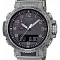 Аксессуар в спортивном стиле станет неотъемлемой частью экипировки опытного туриста, ведь он обладает полезными часовыми усложнениями. Выделяют барометр, цифровой компас, таймер обратного отсчёта, датчик измерения температуры окружающего воздуха -10°C /+60°C, высотомер с памятью данных, мировое времяМировое время Полезное часовое усложнение, отображающее время в основных городах и известных областях по всему миру, оно связано с часовыми поясами, удобно для путешественников и бизнесменов. , приём радиосигнала для настройки точного времени, хронографХронографФункция позволяет измерять отрезки времени с особой точностью: часы, минуты, секунды. Верным признаком хронографа является наличие на циферблате 3 дополнительных окошек-счётчиков., календарь. Японский кварцевый механизм получает энергию для работы от солнечной батареи – технология . Индикатор уровня заряда батареи. Минеральное стекло. Стальной безельБезельВнешний ободок, закрепляющий стекло. В спортивных часах так называется поворотное кольцо с делениями на циферблате, выполняет роль таймера – замеряет отрезки времени на шкале. Неподвижный безель – элемент декора. Однонаправленно вращающийся безель на дайверских часах позволяет фиксировать моменты погружения и выныривания на поверхность.. Аналоговый циферблат и дисплей со светодиодной подсветкойСветодиодная подсветкаСветодиодная или LED-подсветка обеспечивает появление яркого холодного свечения за счёт LED-элементов - маленьких лампочек. Они потребляют минимальное количество энергии, чаще всего можно встретить 1 светодиод, в нижней части циферблата.. Стрелки с подсветкой NeobriteПодсветка NeobriteИспользование светонакопительных составов на основе сульфида цинка или алюмината стронция, яркий свет можно наблюдать на протяжении 6-10 часов после «зарядки» часов около источника света.. Пластиковый ударопрочный корпусУдаропрочный корпусМеханизм заключён в корпус, выполненный из современных материалов, устойчивых к ударам, механическим повреждениям и падению с высоты: инновационный пластик, карбон, нержавеющая сталь, титан.. Браслет из прочного титана. Водостойкость до 10 бар. Габариты: 50,5 x 47,2 x 13,3 мм.