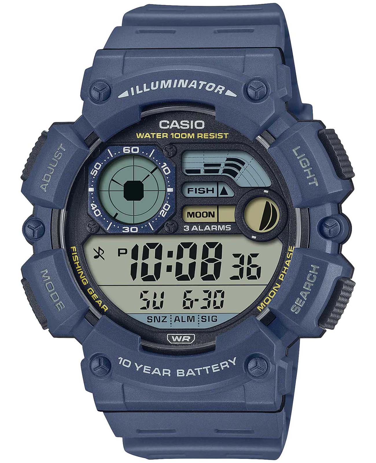 Японские мужские наручные часы Casio WS-1500H-2AVEF c кварцевым механизмом высокой точности. Функции: Мировое времяМировое время Полезное часовое усложнение, отображающее время в основных городах и известных областях по всему миру, оно связано с часовыми поясами, удобно для путешественников и бизнесменов. , светодиодная подсветкаСветодиодная подсветкаСветодиодная или LED-подсветка обеспечивает появление яркого холодного свечения за счёт LED-элементов - маленьких лампочек. Они потребляют минимальное количество энергии, чаще всего можно встретить 1 светодиод, в нижней части циферблата., секундомерСекундомерСекундоме́р — прибор, способный измерять интервалы времени с точностью до долей секунды., таймерТаймерОтсчитывает секунды в обратном направлении в заданном интервале времени., будильникБудильникБуди́льник — часы, в заданный момент времени подающие звуковой, световой и/или в редких случаях другой сигнал., автоматический календарь, 12/24 отображение времени. Продолжительное время работы аккумулятора - 10 лет. Органическое стекло, корпус и ремешок из полимерного пластика, водонепроницаемость 100 метров, позволит плавать, нырять и заниматься другими водными видами спорта