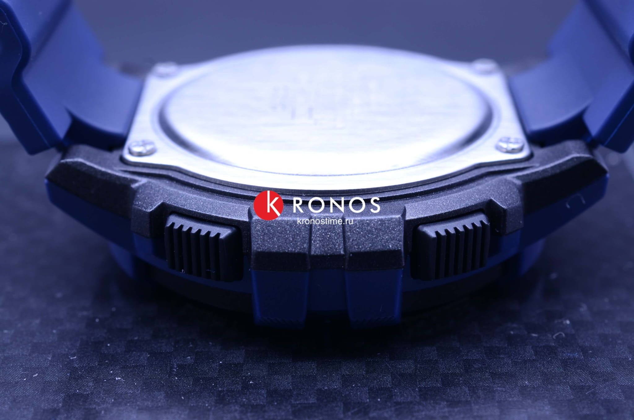 Аксессуар представлен в спортивном стиле. Синий полимерный ремешок имеет протекторную поверхность, боковые кнопки рифленые. В верхней части циферблата расположился индикатор рыбалки. Устройство поможет чётко рассчитать благоприятное время для рыбной ловли, в этот момент на экране появятся символы в виде рыбок. Корпус выполнен из полимерного пластика, материал устойчив к ударам, повреждениям. Японский кварцевый механизм. Батарейка рассчитана на 3 года работы. Акриловое стекло не повреждается при падении. Циферблат с оранжевой светодиодной подсветкойСветодиодная подсветкаСветодиодная или LED-подсветка обеспечивает появление яркого холодного свечения за счёт LED-элементов - маленьких лампочек. Они потребляют минимальное количество энергии, чаще всего можно встретить 1 светодиод, в нижней части циферблата.. Класс водостойкости WR 100. Отображение мирового времениМировое время Полезное часовое усложнение, отображающее время в основных городах и известных областях по всему миру, оно связано с часовыми поясами, удобно для путешественников и бизнесменов. . Будильник с функцией повтора, отображение лунных фаз, хронографХронографФункция позволяет измерять отрезки времени с особой точностью: часы, минуты, секунды. Верным признаком хронографа является наличие на циферблате 3 дополнительных окошек-счётчиков., таймер, вечный календарьВечный календарьКлассическое часовое усложнение, представляющее собой календарь, рассчитанный на несколько лет вперёд (стандартно – до 2099 года). Определяет текущую дату, день недели, месяц.. Габариты: 47,9 x 48,6 x 14 мм.