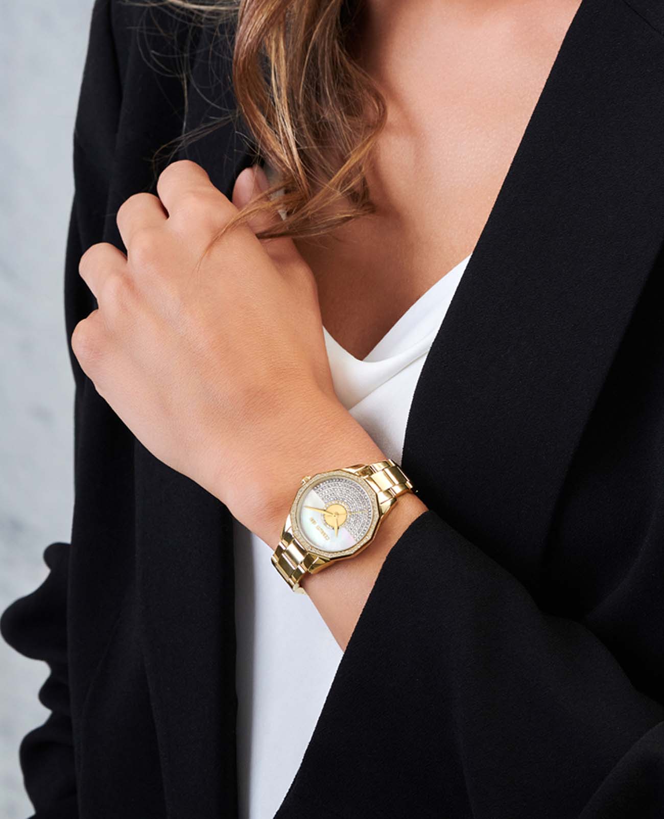 Французские женские часы с кристаллами Cerruti 1881 Jesina CIWLG0008902, кварцевый механизм с высокой точностью. Минеральное стеклоМинеральное стеклоМинеральное стекло представляет собой искусственно выращенный минерал кварца. Такое стекло отличается особой устойчивостью к повреждениям и царапинам. Уступает по некоторым качествам сапфировому стеклу. устойчивое к мелким механическим повреждениям. Корпус часов изготовлен из стали с IP-покрытиемIP-покрытиеМетод ионного напыления. Демонстрирует повышенную устойчивость к истиранию, окислению и химическим веществам. Под воздействием высокого давления и температуры около 1500°C молекулы металла надёжно соединяются с частицами корпуса часов.. БезельБезельВнешний ободок, закрепляющий стекло. В спортивных часах так называется поворотное кольцо с делениями на циферблате, выполняет роль таймера – замеряет отрезки времени на шкале. Неподвижный безель – элемент декора. Однонаправленно вращающийся безель на дайверских часах позволяет фиксировать моменты погружения и выныривания на поверхность. и циферблат украшены кристаллами. Класс водозащиты: 30 метров, позволит защитить корпус от случайных брызг или капель дождя. Стальной браслет с IP-покрытиемIP-покрытиеМетод ионного напыления. Демонстрирует повышенную устойчивость к истиранию, окислению и химическим веществам. Под воздействием высокого давления и температуры около 1500°C молекулы металла надёжно соединяются с частицами корпуса часов. на застёжке-бабочке с кнопкамиЗастёжка "бабочка"Такой вид застёжки дополняется предохранителями, помогающими избежать случайного раскрытия браслета. Обладают изящным исполнением. .