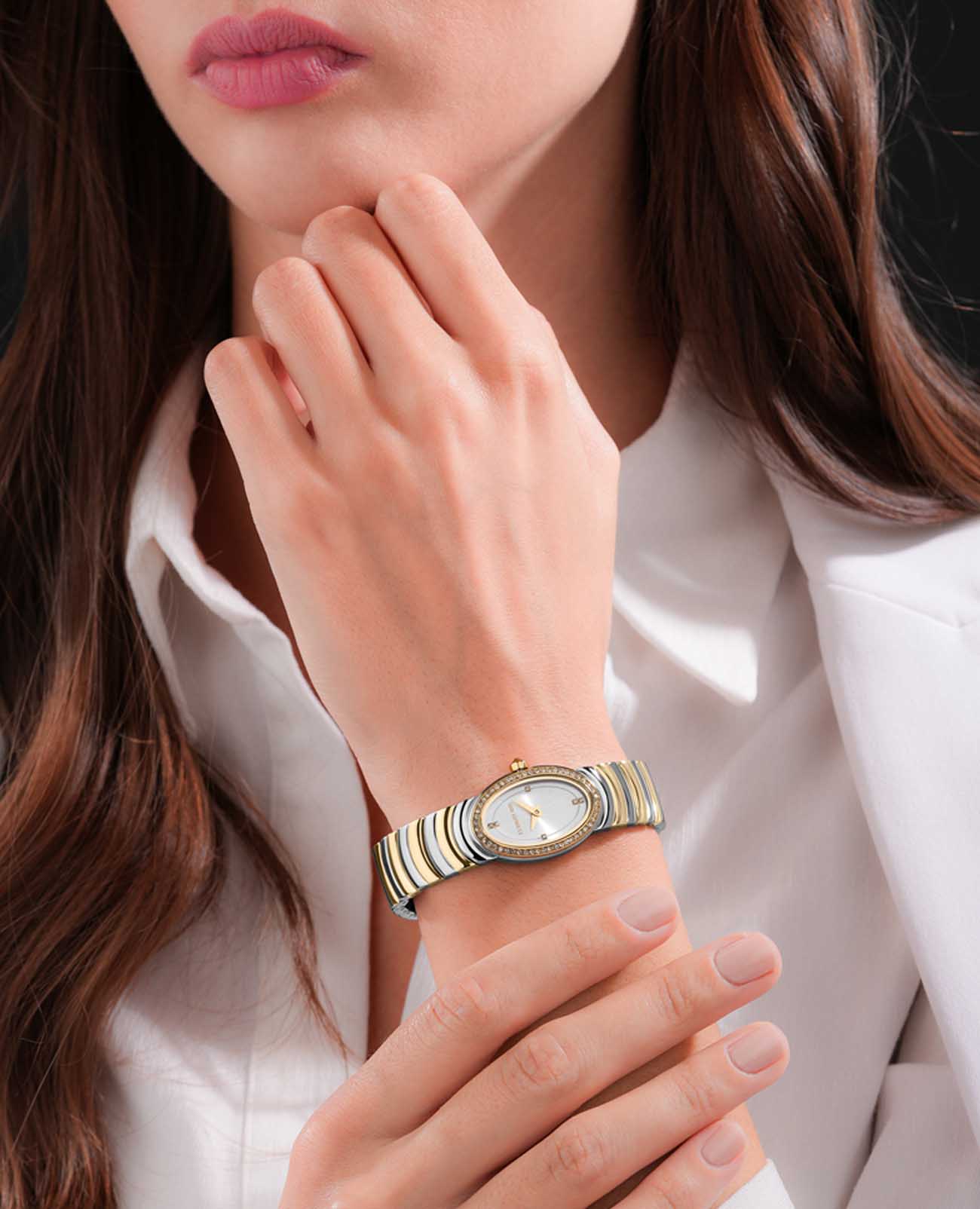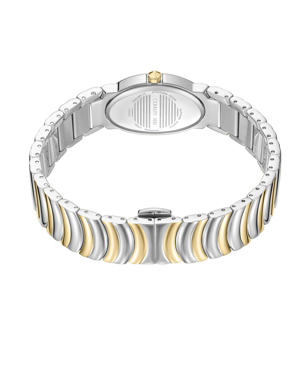 Французские женские часы с кристаллами Cerruti 1881 Norcia CIWLG0030505, кварцевый механизм с высокой точностью. Минеральное стеклоМинеральное стеклоМинеральное стекло представляет собой искусственно выращенный минерал кварца. Такое стекло отличается особой устойчивостью к повреждениям и царапинам. Уступает по некоторым качествам сапфировому стеклу. устойчивое к мелким механическим повреждениям. Корпус часов изготовлен из стали. БезельБезельВнешний ободок, закрепляющий стекло. В спортивных часах так называется поворотное кольцо с делениями на циферблате, выполняет роль таймера – замеряет отрезки времени на шкале. Неподвижный безель – элемент декора. Однонаправленно вращающийся безель на дайверских часах позволяет фиксировать моменты погружения и выныривания на поверхность. с IP-покрытиемIP-покрытиеМетод ионного напыления. Демонстрирует повышенную устойчивость к истиранию, окислению и химическим веществам. Под воздействием высокого давления и температуры около 1500°C молекулы металла надёжно соединяются с частицами корпуса часов. и циферблат украшены кристаллами. Класс водозащиты: 30 метров, позволит защитить корпус от случайных брызг или капель дождя. Стальной браслет с частичным IP-покрытиемIP-покрытиеМетод ионного напыления. Демонстрирует повышенную устойчивость к истиранию, окислению и химическим веществам. Под воздействием высокого давления и температуры около 1500°C молекулы металла надёжно соединяются с частицами корпуса часов. на застёжке-бабочке с кнопкамиЗастёжка "бабочка"Такой вид застёжки дополняется предохранителями, помогающими избежать случайного раскрытия браслета. Обладают изящным исполнением. .