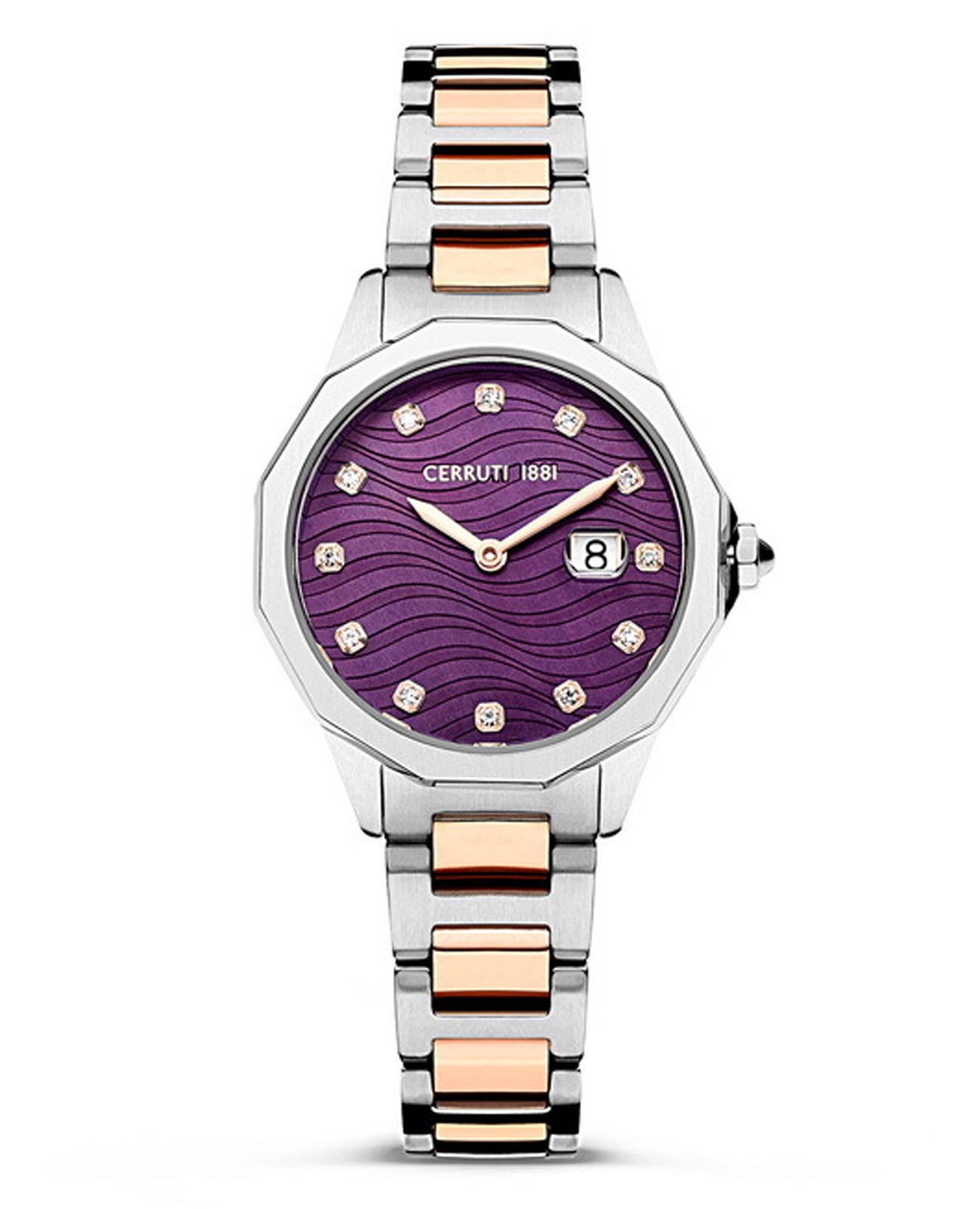 Французские женские часы с кристаллами Cerruti 1881 Jesina CIWLG2232403, кварцевый механизм с высокой точностью. Минеральное стеклоМинеральное стеклоМинеральное стекло представляет собой искусственно выращенный минерал кварца. Такое стекло отличается особой устойчивостью к повреждениям и царапинам. Уступает по некоторым качествам сапфировому стеклу. устойчивое к мелким механическим повреждениям. Корпус часов изготовлен из стали. Циферблат украшен кристаллами. Окошко даты находится в положении 3 часа. Класс водозащиты: 30 метров, позволит защитить корпус от случайных брызг или капель дождя. Стальной браслет с частичным IP-покрытиемIP-покрытиеМетод ионного напыления. Демонстрирует повышенную устойчивость к истиранию, окислению и химическим веществам. Под воздействием высокого давления и температуры около 1500°C молекулы металла надёжно соединяются с частицами корпуса часов. на застёжке-бабочке с кнопкамиЗастёжка "бабочка"Такой вид застёжки дополняется предохранителями, помогающими избежать случайного раскрытия браслета. Обладают изящным исполнением. .