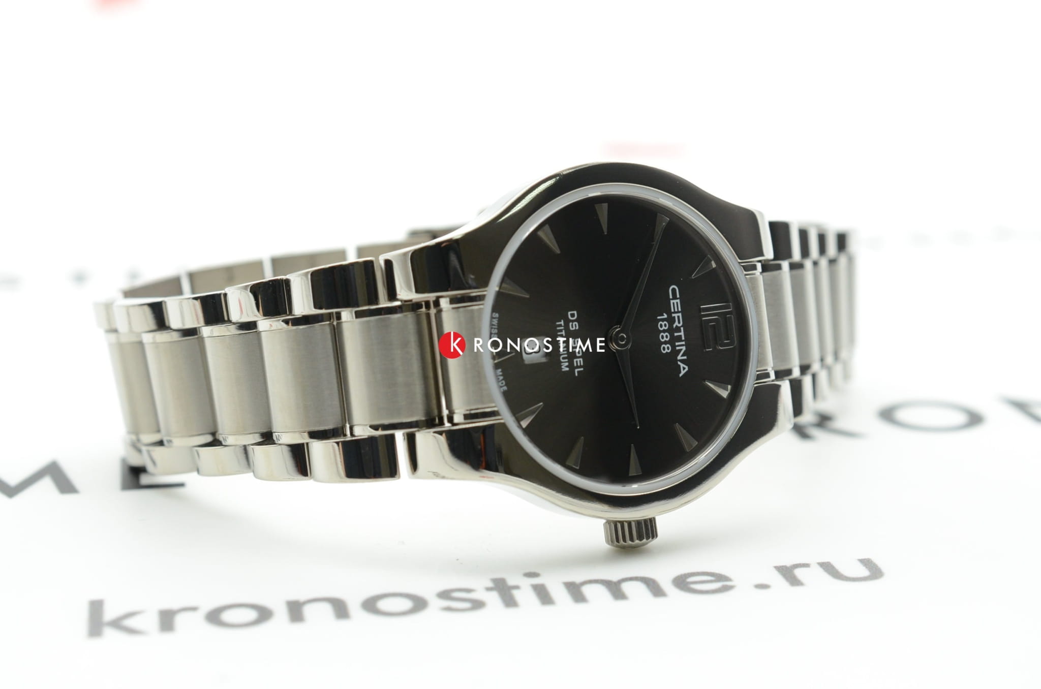 С виду женственная модель внутри – крепкий орешек. Корпус с концепцией DSDS ConceptDouble Security Concept, обозначает двойную надёжность и безупречную точность часов Certina. Двойная система защиты подразумевает обеспечение максимальной устойчивости к ударам и высоких показателей водонепроницаемости. выполнен из прочного гипоаллергенного титана. Антрацитовый циферблат защищён сапфировым стеклом, устойчивым к царапинам. Водозащита WR 100. Отображение числа.