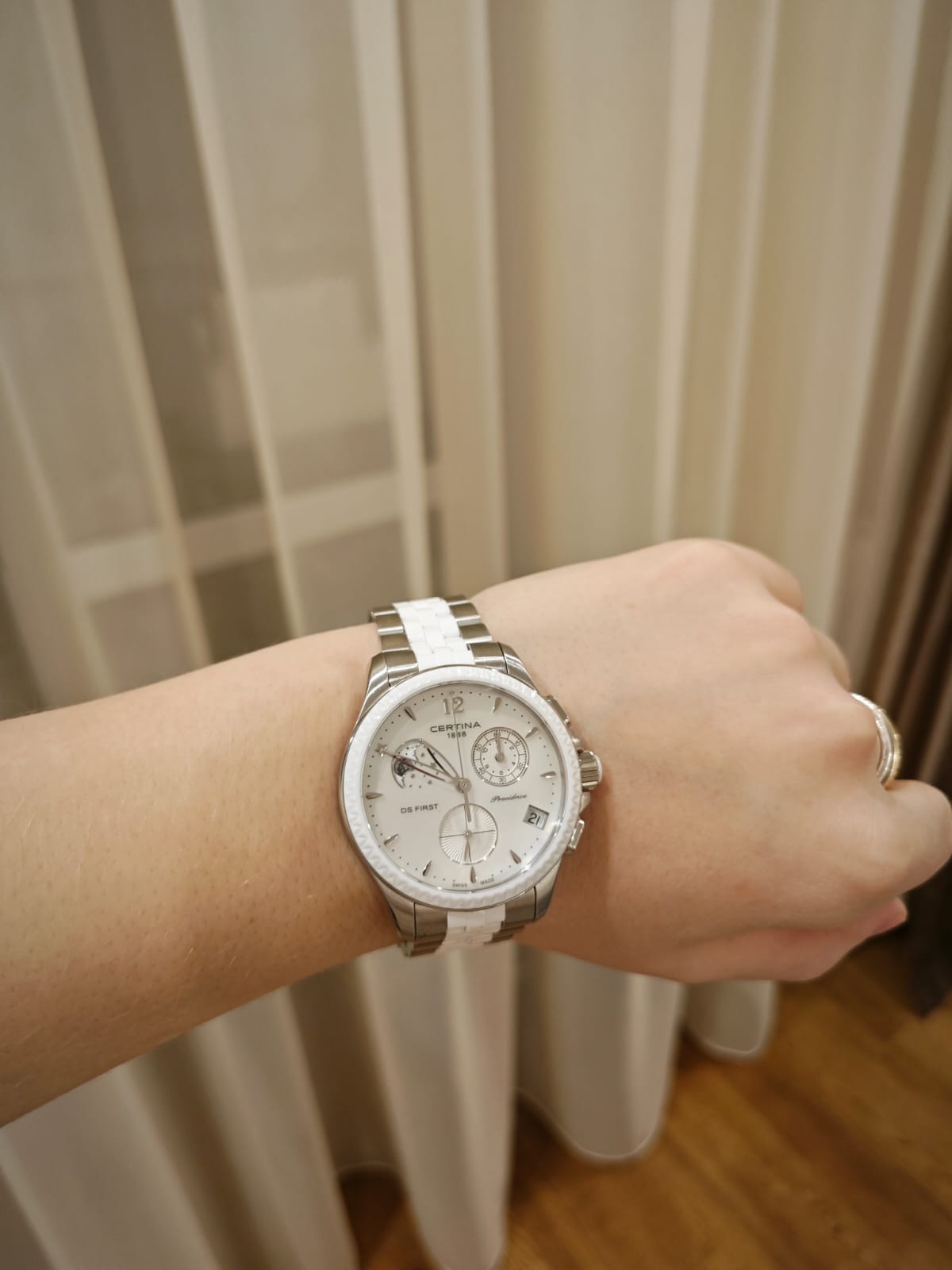Женские швейцарские часы Certina DS First Lady Chronograph Moon Phase C030.250.11.106.00 из коллекции DS First привлекают эксклюзивным дизайном.