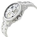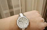 Окошко на позиции 10 часов отображает лунные фазы, стильно смотрится бриллиантовая звезда. Кварцевый швейцарский механизм G10.962 Precidrive™Precidrive™Инновационный кварцевый механизм Certina. Часы, оснащённые этим швейцарским калибром, приравниваются к точности к сертифицированным хронометрам, точность хода составляет +/-10 секунд в год.. Керамический безельБезельВнешний ободок, закрепляющий стекло. В спортивных часах так называется поворотное кольцо с делениями на циферблате, выполняет роль таймера – замеряет отрезки времени на шкале. Неподвижный безель – элемент декора. Однонаправленно вращающийся безель на дайверских часах позволяет фиксировать моменты погружения и выныривания на поверхность.. Стальной браслет с керамическими вставками. EOLEOLПредставляет собой систему, уведомляющую владельца часов о необходимости замены элемента питания. За 2 недели до полного разряда батарейки секундная стрелка перестаёт ходить чётко и начинает перепрыгивать на 3-4 деления., календарь, хронографХронографФункция позволяет измерять отрезки времени с особой точностью: часы, минуты, секунды. Верным признаком хронографа является наличие на циферблате 3 дополнительных окошек-счётчиков..