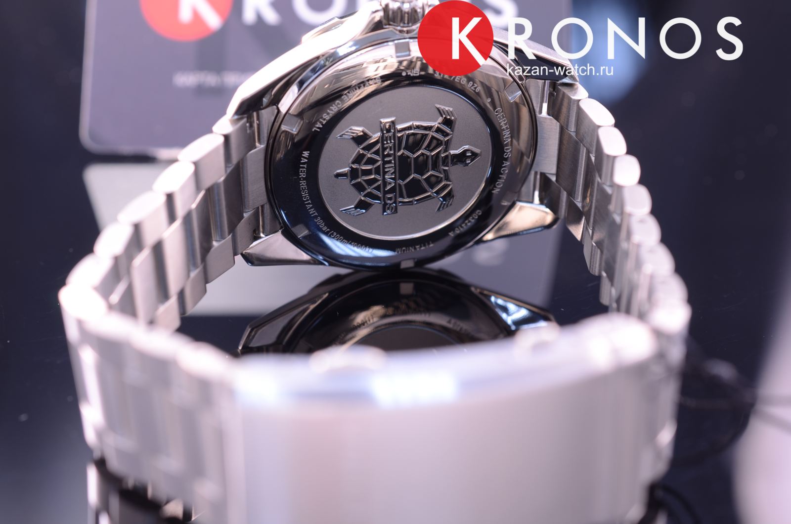 Наручные часы представляют собой настоящий шедевр, безупречно всё: от продуманного дизайна до высокого качества исполнения. Модель выполнена из титана, отличающегося устойчивостью к воздействию магнитных полей и морской воды. Швейцарский кварцевый механизм ETA F07.411 Precidrive™Precidrive™Инновационный кварцевый механизм Certina. Часы, оснащённые этим швейцарским калибром, приравниваются к точности к сертифицированным хронометрам, точность хода составляет +/-10 секунд в год. демонстрирует максимальную точность хода. Сапфировое стекло с антибликовой поверхностью. Односторонне вращающийся безельБезельВнешний ободок, закрепляющий стекло. В спортивных часах так называется поворотное кольцо с делениями на циферблате, выполняет роль таймера – замеряет отрезки времени на шкале. Неподвижный безель – элемент декора. Однонаправленно вращающийся безель на дайверских часах позволяет фиксировать моменты погружения и выныривания на поверхность.. Реализация концепции Double SecurityDS ConceptDouble Security Concept, обозначает двойную надёжность и безупречную точность часов Certina. Двойная система защиты подразумевает обеспечение максимальной устойчивости к ударам и высоких показателей водонепроницаемости.. Водонепроницаемость при давлении до 30 бар. Застёжка с фиксатором и удлинением для дайверовУдлинение для дайверовЗастёжка с удлинением для дайверов представляет собой безопасное крепление, которое позволяет надевать часы поверх гидрокостюма. Гибкая застёжка удлиняется на 1-2 миллиметра.. Яркая люминесцентная подсветкаЛюминесцентное покрытиеПозволяет считывать показания времени в темноте. Производители наносят на стрелки, часовые индексы, безель или поверхность циферблата светонакопительный состав, дающий холодное свечение.. Окошко даты, индикатор EOLEOLПредставляет собой систему, уведомляющую владельца часов о необходимости замены элемента питания. За 2 недели до полного разряда батарейки секундная стрелка перестаёт ходить чётко и начинает перепрыгивать на 3-4 деления.. Диаметр корпуса: 41 мм.