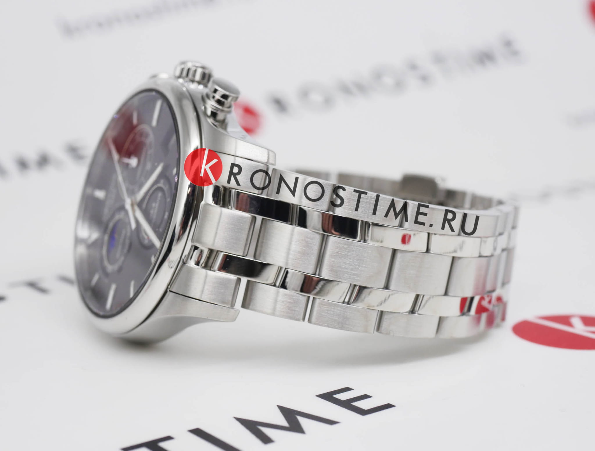 Швейцарские мужские часы Certina DS-8 Chronograph Moon Phase C033.450.11.051.00 из коллекции DS-8 привлекают оригинальным дизайном и абсолютной точностью хода. Модель, благодаря классической цветовой гамме и отсутствию броских деталей, станет универсальным аксессуаром к вашему образу. Брендовый хронографХронографФункция позволяет измерять отрезки времени с особой точностью: часы, минуты, секунды. Верным признаком хронографа является наличие на циферблате 3 дополнительных окошек-счётчиков. измеряет время с высокой точностью, что обеспечивает швейцарский кварцевый калибр ETA G10.962 Precidrive™Precidrive™Инновационный кварцевый механизм Certina. Часы, оснащённые этим швейцарским калибром, приравниваются к точности к сертифицированным хронометрам, точность хода составляет +/-10 секунд в год.. Браслет из нержавеющей стали. Сапфировое стекло с двухсторонним антибликовым покрытием. Корпус из нержавеющей стали 316L. Водостойкость 10 бар. Люминесцентная подсветкаЛюминесцентное покрытиеПозволяет считывать показания времени в темноте. Производители наносят на стрелки, часовые индексы, безель или поверхность циферблата светонакопительный состав, дающий холодное свечение.. Задняя крышка с гравировкой. Секундомер, дата, индикатор EOLEOLПредставляет собой систему, уведомляющую владельца часов о необходимости замены элемента питания. За 2 недели до полного разряда батарейки секундная стрелка перестаёт ходить чётко и начинает перепрыгивать на 3-4 деления., отображение лунных фаз. Диаметр корпуса: 42 мм. Производство и сборка: Швейцария.