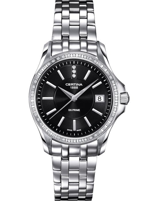 Изящный безельБезельВнешний ободок, закрепляющий стекло. В спортивных часах так называется поворотное кольцо с делениями на циферблате, выполняет роль таймера – замеряет отрезки времени на шкале. Неподвижный безель – элемент декора. Однонаправленно вращающийся безель на дайверских часах позволяет фиксировать моменты погружения и выныривания на поверхность. декорирован 48 бриллиантами оттенка Top Wesselton, 3 камня украшают циферблат. Часы работают за счёт кварцевого швейцарского калибра ETA F05.111, надёжная защита обеспечивается благодаря концепции DS ConceptDS ConceptDouble Security Concept, обозначает двойную надёжность и безупречную точность часов Certina. Двойная система защиты подразумевает обеспечение максимальной устойчивости к ударам и высоких показателей водонепроницаемости.. В правой части размещен указатель даты.