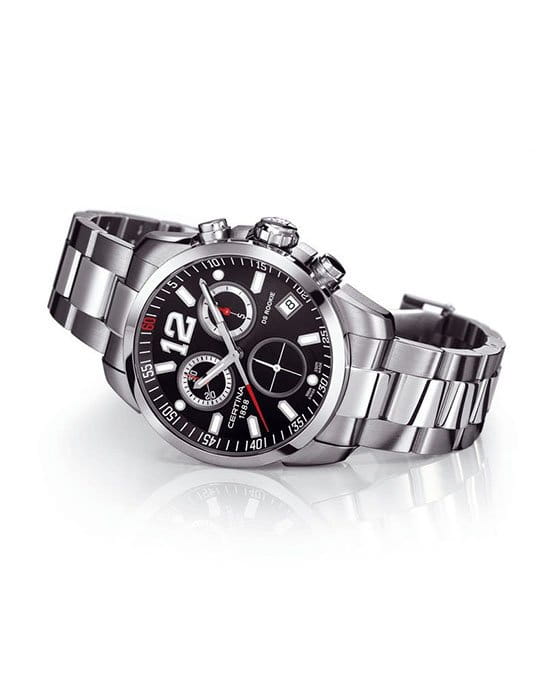 Спортивный хронографХронографФункция позволяет измерять отрезки времени с особой точностью: часы, минуты, секунды. Верным признаком хронографа является наличие на циферблате 3 дополнительных окошек-счётчиков. основан на концепции Двойной надёжности DSDS ConceptDouble Security Concept, обозначает двойную надёжность и безупречную точность часов Certina. Двойная система защиты подразумевает обеспечение максимальной устойчивости к ударам и высоких показателей водонепроницаемости.. Ударопрочный корпусУдаропрочный корпусМеханизм заключён в корпус, выполненный из современных материалов, устойчивых к ударам, механическим повреждениям и падению с высоты: инновационный пластик, карбон, нержавеющая сталь, титан. защищает швейцарский кварцевый механизм ETA G10.211. Люминесцентная подсветкаЛюминесцентное покрытиеПозволяет считывать показания времени в темноте. Производители наносят на стрелки, часовые индексы, безель или поверхность циферблата светонакопительный состав, дающий холодное свечение. стрелок позволяет пользоваться часами в темноте. Сапфировое стекло невозможно поцарапать.