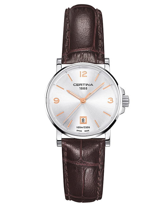 Женские швейцарские часы с сапфировым стекломСапфировое стеклоПрочный и надёжный материал из кристалла сапфира синтетического происхождения, характеризующийся особой твёрдостью и устойчивостью к царапинам и повреждениям. Certina DS Caimano C017.210.16.037.01 привлекает внимание окружающих приятным сочетанием простоты и кокетства. DS Caimano. Водонепроницаемые женские часы. Круглый стальной корпус. Циферблат выполнен по технологии Sunray (солнечные лучи). Узкие заостренные прямоугольные стрелки в стиле Baton. Метки в виде штрихов, 3, 6 и 12 часовые метки в виде арабских цифр.