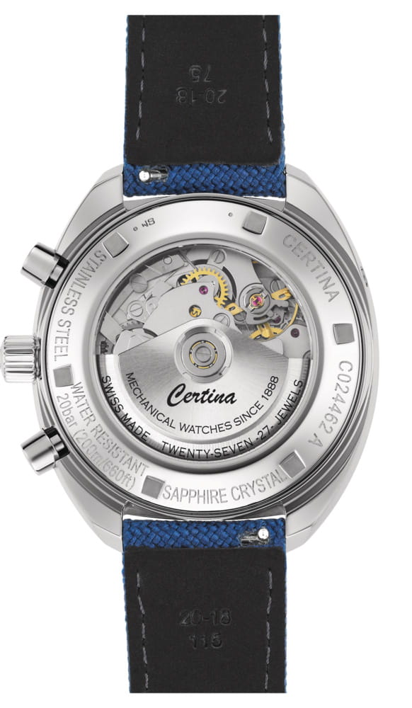 Новый хронографХронографФункция позволяет измерять отрезки времени с особой точностью: часы, минуты, секунды. Верным признаком хронографа является наличие на циферблате 3 дополнительных окошек-счётчиков. от Certina вдохновлен часами, которые были на пике своего времени – буквально! Предшественник модели DS-2 Chronograph Automatic доказал свои исключительные качества во время захватывающей экспедиции на Эверест. Новая модель переносит этот дух приключений в 21 век благодаря спортивно-элегантному винтажному дизайну и кремниевой технологии. Таким образом, традиционное мастерство стильно передается следующему поколению. Циферблат с люминесцентным покрытиемЛюминесцентное покрытиеПозволяет считывать показания времени в темноте. Производители наносят на стрелки, часовые индексы, безель или поверхность циферблата светонакопительный состав, дающий холодное свечение. стрелок и меток, дополнен сапфировым стекломСапфировое стеклоПрочный и надёжный материал из кристалла сапфира синтетического происхождения, характеризующийся особой твёрдостью и устойчивостью к царапинам и повреждениям., устойчивым к появлению царапин и обладающее высокой прозрачностью. Кожаный браслет оснащен надежной и весьма удобной в пользовании застёжкой-бабочкой с кнопкамиЗастёжка "бабочка"Такой вид застёжки дополняется предохранителями, помогающими избежать случайного раскрытия браслета. Обладают изящным исполнением. .