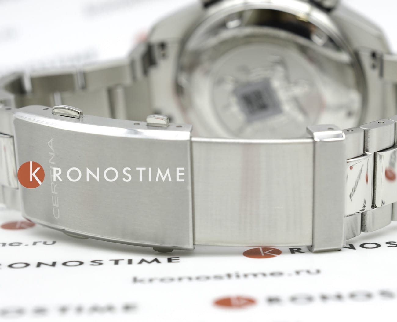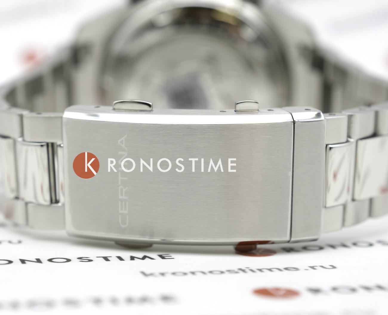 Швейцарские мужские механические часы Certina DS Action Diver Chrono C032.827.11.051.00 из коллекции DS Action – безупречно точный и впечатляюще надёжный аксессуар. Габаритный хронографХронографФункция позволяет измерять отрезки времени с особой точностью: часы, минуты, секунды. Верным признаком хронографа является наличие на циферблате 3 дополнительных окошек-счётчиков. с циферблатом выгодно подчеркнёт повседневный или деловой образ. Модель соответствует стандарту ISO 6425 для дайверских часов и может похвастаться повышенной водостойкостью до 30 бар. Заводная головка, кнопки и задняя крышка завинчиваются для дополнительной герметичности. Аксессуар позволит вам чувствовать себя на высоте и в воде, и на суше. Сапфировое стеклоСапфировое стеклоПрочный и надёжный материал из кристалла сапфира синтетического происхождения, характеризующийся особой твёрдостью и устойчивостью к царапинам и повреждениям. с двухсторонней антибликовой обработкой. Керамический вращающийся безельБезельВнешний ободок, закрепляющий стекло. В спортивных часах так называется поворотное кольцо с делениями на циферблате, выполняет роль таймера – замеряет отрезки времени на шкале. Неподвижный безель – элемент декора. Однонаправленно вращающийся безель на дайверских часах позволяет фиксировать моменты погружения и выныривания на поверхность.. Корпус из нержавеющей стали 316L. Люминесцентная подсветкаЛюминесцентное покрытиеПозволяет считывать показания времени в темноте. Производители наносят на стрелки, часовые индексы, безель или поверхность циферблата светонакопительный состав, дающий холодное свечение.. Календарь, секундомер. Стальной браслет на раскладной застёжкеРаскладная застёжкаТакой тип застёжки используется только на браслетах из металла. Она никогда не раскрывается полностью, происходит разделение на 2 и более частей. Раскладывающая застёжка снизит вероятность потери часов к минимуму.. Диаметр корпуса: 44,6 мм.