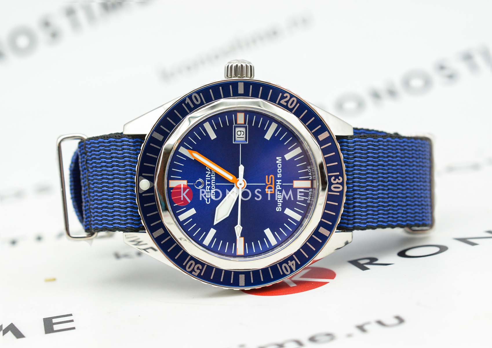 Впечатляющий DS Super PH500M привлечет всеобщее внимание своим винтажным стилем. Бесчисленные функциональные характеристики этих дайв-часов, такие как спираль Nivachron™Nivachron™Специально разработанный инновационный сплав Nivachron™ повышает устойчивость часов к воздействию магнитных полей., устойчивая к магнитным полям, и ее герметичность до 500 м, делают их идеальным компаньоном даже под водой, поскольку они соответствуют высоким требованиям ISO 6425. C037.407.18.040.10 имеет калибр Powermatic 80Powermatic 80Эксклюзивный калибр от швейцарской компании ETA с увеличенным запасом хода до 80 часов за счёт удлинённой заводной пружины. Характеризуется улучшенной системой спуска со сниженным трением., который позволяет увеличить запас хода до 80 часов. Антибликовое Сапфировое стеклоСапфировое стеклоПрочный и надёжный материал из кристалла сапфира синтетического происхождения, характеризующийся особой твёрдостью и устойчивостью к царапинам и повреждениям., синий циферблат, индексы и серебряные стрелки с покрытием Superluminova, синий безель из алюминия, окно даты в положении «3 часа», синий нейлоновый ремешок с классической пряжкой.