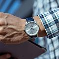 Часы Citizen AK5000-03A произведены в Японии и оснащены надёжным кварцевым механизмом калибра Citizen 6324. Корпус выполнен из нержавеющей стали и имеет классическую круглую форму диаметром 42 мм. Минеральное стеклоМинеральное стеклоМинеральное стекло представляет собой искусственно выращенный минерал кварца. Такое стекло отличается особой устойчивостью к повреждениям и царапинам. Уступает по некоторым качествам сапфировому стеклу. защищает серебристый циферблат, украшенный эффектом солнечных лучей по технологии Sunray. На циферблате расположены клиновидные стрелки в стиле Dauphine, метки в виде штрихов и римская цифра в положении 12 часов, а также индикатор фазы Луны — одно из самых востребованных усложнений в часовой классике. Часы защищены от воды по стандарту 50WR, что позволяет не бояться случайных брызг и дождя. Заводная головка отличается рифлёной поверхностью для удобства использования. Модель комплектуется синим кожаным ремешком с тиснением под кожу аллигатора и классической застёжкой. В качестве элемента питания используется батарейка SR621SW, обеспечивающая автономную работу до двух лет.