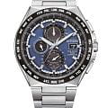 Японские наручные часы Citizen AT8238-84L сочетают в себе передовые технологии, надежность и стильный современный дизайн. Корпус и браслет выполнены из высокопрочного материала Super Titanium, который в пять раз тверже и на 40% легче стали, а также отличается высокой устойчивостью к царапинам и коррозии, а на безельБезельВнешний ободок, закрепляющий стекло. В спортивных часах так называется поворотное кольцо с делениями на циферблате, выполняет роль таймера – замеряет отрезки времени на шкале. Неподвижный безель – элемент декора. Однонаправленно вращающийся безель на дайверских часах позволяет фиксировать моменты погружения и выныривания на поверхность. нанесено черное IP-покрытиеIP-покрытиеМетод ионного напыления. Демонстрирует повышенную устойчивость к истиранию, окислению и химическим веществам. Под воздействием высокого давления и температуры около 1500°C молекулы металла надёжно соединяются с частицами корпуса часов.. Диаметр корпуса составляет 43,5 мм, толщина — 10 мм, а вес — всего 90 грамм, что обеспечивает легкость и комфорт при ежедневном ношении. Часы оснащены кварцевым хронографомХронографФункция позволяет измерять отрезки времени с особой точностью: часы, минуты, секунды. Верным признаком хронографа является наличие на циферблате 3 дополнительных окошек-счётчиков. на солнечной батарее с системой Eco-Drive, не требующей замены батарейки, и калибром Citizen H800, обеспечивающим до 6 месяцев работы без подзарядки и защиту от перезаряда. Особенностью модели является автоматическая синхронизация времени по радиосигналу в четырех регионах мира, охватывающая 26 часовых зон, а также функция мирового времениМировое время Полезное часовое усложнение, отображающее время в основных городах и известных областях по всему миру, оно связано с часовыми поясами, удобно для путешественников и бизнесменов. и вечного календаряВечный календарьКлассическое часовое усложнение, представляющее собой календарь, рассчитанный на несколько лет вперёд (стандартно – до 2099 года). Определяет текущую дату, день недели, месяц., рассчитанного до 2100 года. На синем циферблате расположены центральные часовая и минутная стрелки с люминесцентным покрытиемЛюминесцентное покрытиеПозволяет считывать показания времени в темноте. Производители наносят на стрелки, часовые индексы, безель или поверхность циферблата светонакопительный состав, дающий холодное свечение. для отличной читаемости в темноте, а также апертура даты в позиции 3 часов и отдельный малый циферблат для секундной стрелки. Часы поддерживают 12/24-часовой формат времени, оснащены секундомеромСекундомерСекундоме́р — прибор, способный измерять интервалы времени с точностью до долей секунды. с точностью 1/20 секунды и максимальным временем измерения 60 минут, а также индикатором окончания ресурса элемента питания EOLEOLПредставляет собой систему, уведомляющую владельца часов о необходимости замены элемента питания. За 2 недели до полного разряда батарейки секундная стрелка перестаёт ходить чётко и начинает перепрыгивать на 3-4 деления.. Устойчивое к царапинам сапфировое стеклоСапфировое стеклоПрочный и надёжный материал из кристалла сапфира синтетического происхождения, характеризующийся особой твёрдостью и устойчивостью к царапинам и повреждениям. с антибликовым покрытиемАнтибликовое покрытиеС