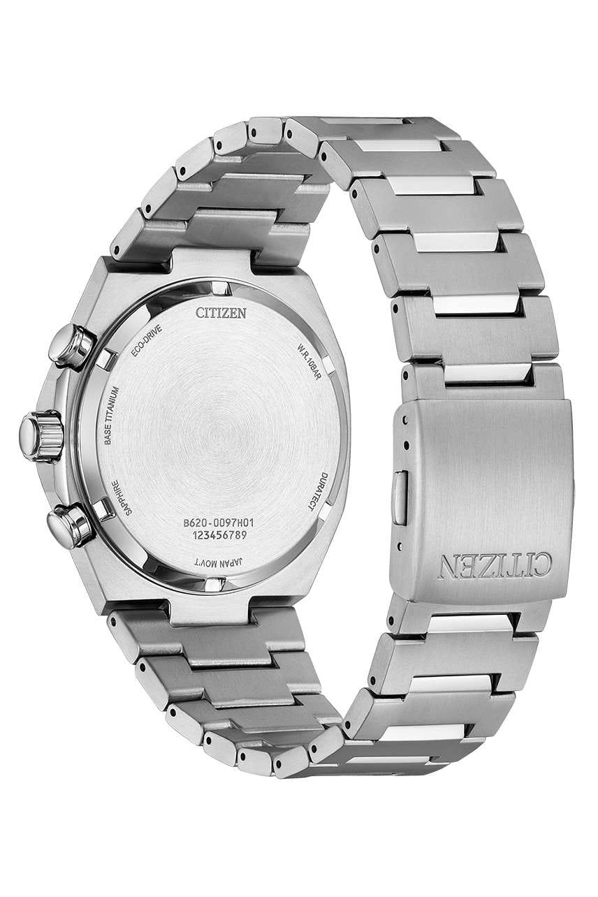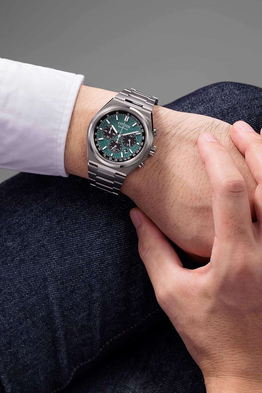 Citizen CA4610-85X — это стильные мужские кварцевые часы с функцией хронографаХронографФункция позволяет измерять отрезки времени с особой точностью: часы, минуты, секунды. Верным признаком хронографа является наличие на циферблате 3 дополнительных окошек-счётчиков., сочетающие передовые технологии и современный дизайн. Корпус и браслет выполнены из сверхлегкого и прочного титана, что обеспечивает комфортное ношение и высокую износостойкость. Зеленый круглый циферблат защищён устойчивым к царапинам сапфировым стекломСапфировое стеклоПрочный и надёжный материал из кристалла сапфира синтетического происхождения, характеризующийся особой твёрдостью и устойчивостью к царапинам и повреждениям.. Часы работают на инновационной системе Eco-Drive, питание которой осуществляется от солнечной энергии, что позволяет отказаться от замены батарейки, а запас хода достигает 9 месяцев. Стрелки с люминесцентным покрытиемЛюминесцентное покрытиеПозволяет считывать показания времени в темноте. Производители наносят на стрелки, часовые индексы, безель или поверхность циферблата светонакопительный состав, дающий холодное свечение. обеспечивают отличную читаемость времени даже в темное время суток. Для удобства предусмотрены функция предотвращения перезарядки и индикация уровня заряда EOLEOLПредставляет собой систему, уведомляющую владельца часов о необходимости замены элемента питания. За 2 недели до полного разряда батарейки секундная стрелка перестаёт ходить чётко и начинает перепрыгивать на 3-4 деления.. Надёжный японский механизм Citizen B620 обеспечивает точный ход, а центральные часовая и минутная стрелки, вынесенная на отдельный малый циферблат секундная стрелка и апертура даты между 4 и 5 часами делают использование максимально удобным. Модель поддерживает 12- и 24-часовой формат времени, а также оснащена секундомером для точного измерения промежутков. Диаметр корпуса составляет 42,5 мм, толщина — 11,6 мм, вес — около 101 грамма. Водозащита уровня WR 100 позволяет не снимать часы во время плавания без глубокого погружения. Раскладная застёжкаРаскладная застёжкаТакой тип застёжки используется только на браслетах из металла. Она никогда не раскрывается полностью, происходит разделение на 2 и более частей. Раскладывающая застёжка снизит вероятность потери часов к минимуму. на браслете обеспечивает надежную фиксацию на запястье. Модель оснащена хронографомХронографФункция позволяет измерять отрезки времени с особой точностью: часы, минуты, секунды. Верным признаком хронографа является наличие на циферблате 3 дополнительных окошек-счётчиков. с секундомеромСекундомерСекундоме́р — прибор, способный измерять интервалы времени с точностью до долей секунды. и тахиметромТахиметрРазмеченная шкала, располагается на ободке или безеле часов. Тахиметр позволяет рассчитать скорость на определённом участке пути, расстояние измеряется в километрах или милях..
