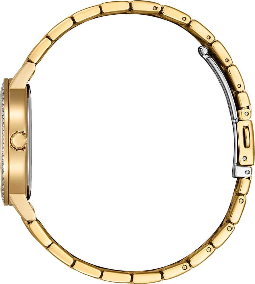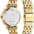 Часы Citizen EL3103-57D представляют собой элегантную модель, выполненную в Японии, сочетающую в себе современные технологии и утончённый дизайн. Корпус и браслет изготовлены из прочной нержавеющей стали с золотистым IP-покрытиемIP-покрытиеМетод ионного напыления. Демонстрирует повышенную устойчивость к истиранию, окислению и химическим веществам. Под воздействием высокого давления и температуры около 1500°C молекулы металла надёжно соединяются с частицами корпуса часов., что обеспечивает долговечность и привлекательный внешний вид. Диаметр корпуса составляет 31 мм, а толщина — всего 7 мм, что делает часы изящными и аккуратными на запястье. Особое внимание привлекает безельБезельВнешний ободок, закрепляющий стекло. В спортивных часах так называется поворотное кольцо с делениями на циферблате, выполняет роль таймера – замеряет отрезки времени на шкале. Неподвижный безель – элемент декора. Однонаправленно вращающийся безель на дайверских часах позволяет фиксировать моменты погружения и выныривания на поверхность., украшенный мерцающими кристаллами, которые придают часам особый шарм и изысканность. Надёжный кварцевый механизм гарантирует точность хода, а водозащита уровня WR 50 позволяет не снимать часы при мытье рук или во время дождя. Перламутровый циферблат украшен часовыми индексами в виде точек и цифр, а также оснащён центральными стрелками часов, минут и секунд для удобного считывания времени и кристаллами. Минеральное стеклоМинеральное стеклоМинеральное стекло представляет собой искусственно выращенный минерал кварца. Такое стекло отличается особой устойчивостью к повреждениям и царапинам. Уступает по некоторым качествам сапфировому стеклу. устойчиво к появлению мелких царапин, сохраняя прозрачность и презентабельный вид. Стальной браслет с золотистым IP-покрытиемIP-покрытиеМетод ионного напыления. Демонстрирует повышенную устойчивость к истиранию, окислению и химическим веществам. Под воздействием высокого давления и температуры около 1500°C молекулы металла надёжно соединяются с частицами корпуса часов. и раскладной застёжкойРаскладная застёжкаТакой тип застёжки используется только на браслетах из металла. Она никогда не раскрывается полностью, происходит разделение на 2 и более частей. Раскладывающая застёжка снизит вероятность потери часов к минимуму. надежно фиксирует часы на запястье, обеспечивая комфорт при ежедневном ношении.