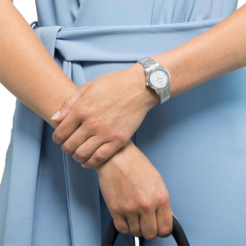 Элегантные часы Citizen FE1220-89A сочетают в себе классический дизайн и современные технологии. Модель изготовлена в Японии и оснащена кварцевым механизмом Citizen J710 с инновационной системой Eco-Drive, которая обеспечивает работу часов за счет солнечной энергии и не требует замены батарейки. Запас хода составляет до 240 дней, а функция индикации заряда позволяет всегда знать уровень энергии. Корпус и браслет выполнены из прочной нержавеющей стали, а надежная раскладная застёжкаРаскладная застёжкаТакой тип застёжки используется только на браслетах из металла. Она никогда не раскрывается полностью, происходит разделение на 2 и более частей. Раскладывающая застёжка снизит вероятность потери часов к минимуму. с системой блокировки обеспечивает дополнительную безопасность при ношении. Белый циферблат украшен окошком даты, а минеральное стеклоМинеральное стеклоМинеральное стекло представляет собой искусственно выращенный минерал кварца. Такое стекло отличается особой устойчивостью к повреждениям и царапинам. Уступает по некоторым качествам сапфировому стеклу. надежно защищает его от повреждений. Водозащита до 100 метров позволяет использовать часы в повседневной жизни и во время активного отдыха. Диаметр корпуса составляет 30 мм, толщина — 8,9 мм, вес — 69 г. Эта модель станет отличным выбором для тех, кто ценит надежность, стиль и современные технологии в одном аксессуаре.