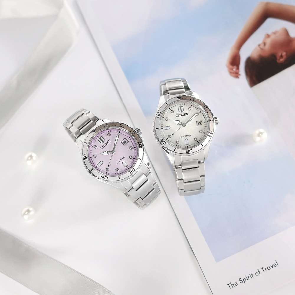 Элегантные женские часы Citizen FE6170-88X станут ярким акцентом любого образа благодаря современному дизайну и высокому качеству исполнения. Корпус диаметром 36,8 мм и толщиной 9,8 мм выполнен из прочной нержавеющей стали, что гарантирует долговечность и надежность. Особое внимание привлекает розовый циферблат, украшенный сверкающими кристаллами в виде часовых меток, что придаёт модели утончённый и изысканный вид. Кварцевый механизм с калибром Citizen J810 работает на инновационной системе Eco-Drive — часы заряжаются от любого источника света, обеспечивая запас хода до 240 дней и не требуя замены батарейки. Функции индикации заряда EOLEOLПредставляет собой систему, уведомляющую владельца часов о необходимости замены элемента питания. За 2 недели до полного разряда батарейки секундная стрелка перестаёт ходить чётко и начинает перепрыгивать на 3-4 деления. и предотвращения перезарядки обеспечивают дополнительное удобство в использовании. Окошко даты расположено на отметке 3 часа для быстрого просмотра текущего числа. Прочное минеральное стеклоМинеральное стеклоМинеральное стекло представляет собой искусственно выращенный минерал кварца. Такое стекло отличается особой устойчивостью к повреждениям и царапинам. Уступает по некоторым качествам сапфировому стеклу. защищает циферблат от случайных царапин, а водозащита уровня 100WR позволяет использовать часы даже во время плавания. А безельБезельВнешний ободок, закрепляющий стекло. В спортивных часах так называется поворотное кольцо с делениями на циферблате, выполняет роль таймера – замеряет отрезки времени на шкале. Неподвижный безель – элемент декора. Однонаправленно вращающийся безель на дайверских часах позволяет фиксировать моменты погружения и выныривания на поверхность. часов вращается в одном направлении. Стрелки с люминесцентным покрытиемЛюминесцентное покрытиеПозволяет считывать показания времени в темноте. Производители наносят на стрелки, часовые индексы, безель или поверхность циферблата светонакопительный состав, дающий холодное свечение. обеспечивают отличную читаемость времени даже в темное время суток. Стальной браслет с раскладной застёжкойРаскладная застёжкаТакой тип застёжки используется только на браслетах из металла. Она никогда не раскрывается полностью, происходит разделение на 2 и более частей. Раскладывающая застёжка снизит вероятность потери часов к минимуму. обеспечивает комфортное и надежное крепление на запястье. Модель произведена в Японии и отличается высоким стандартом качества.