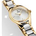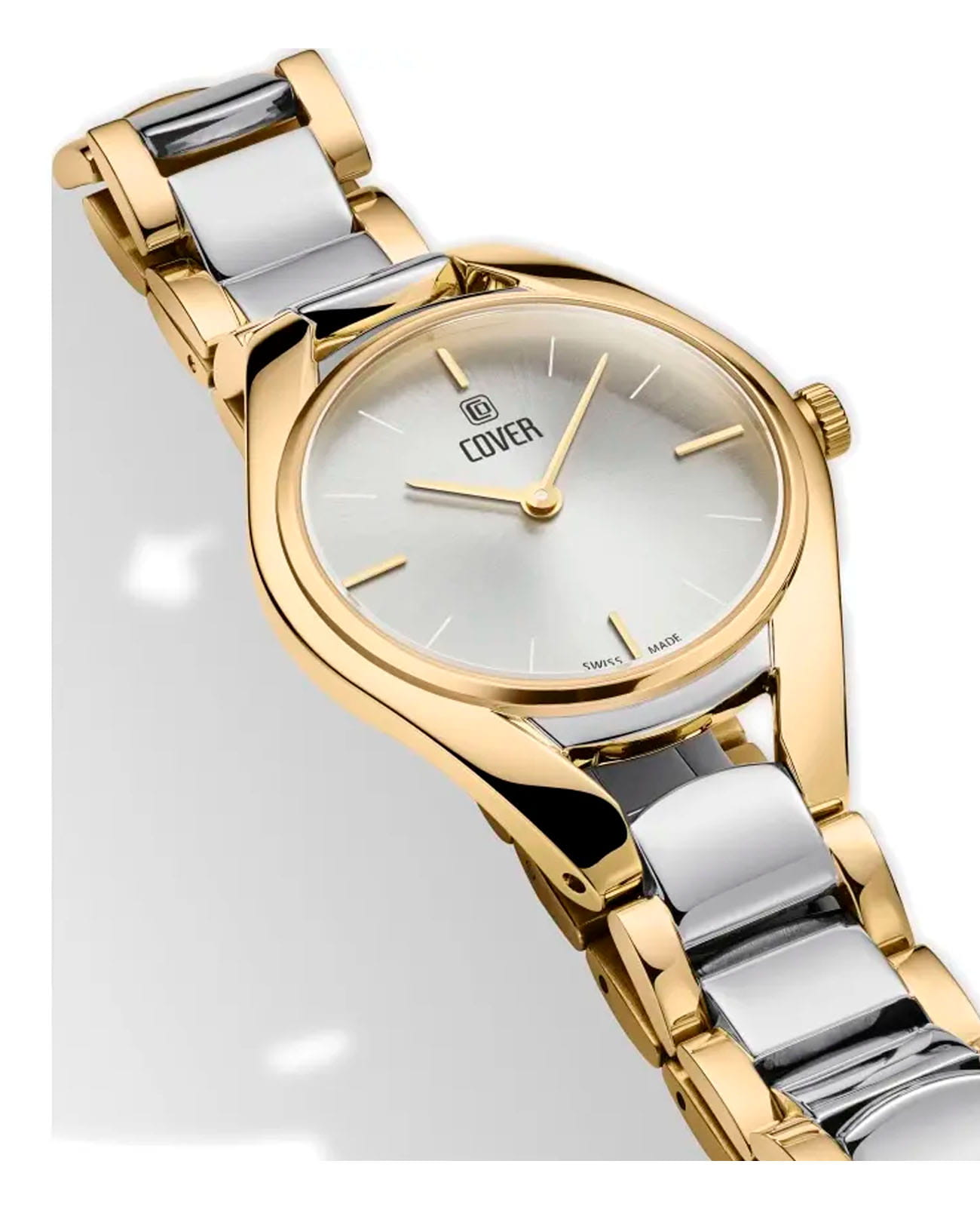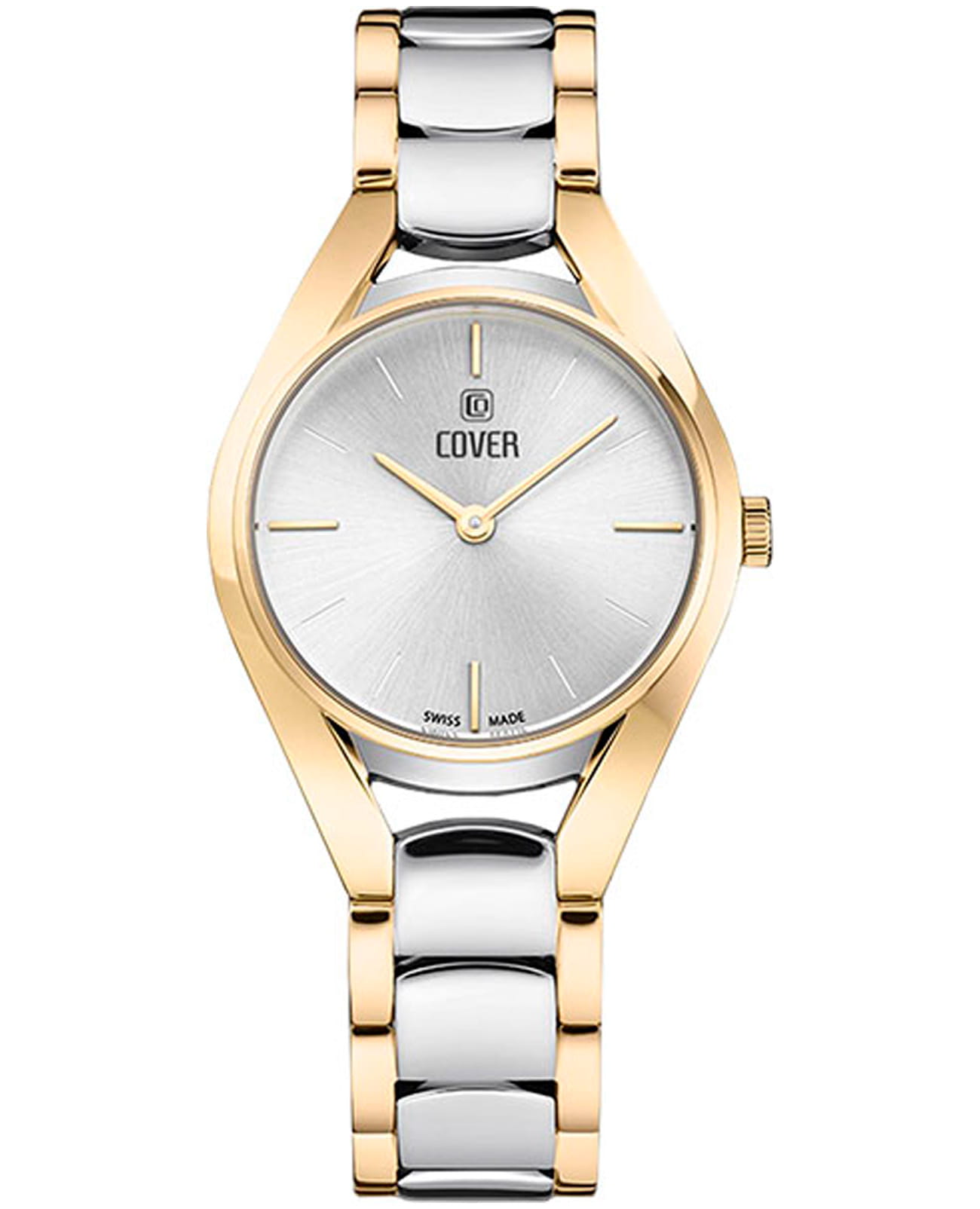 Женские наручные часы Cover CO197.02 из коллекции La Chic сочетают в себе элегантность и надежность швейцарского производства. Модель обладает круглым корпусом диаметром 30 мм, изготовленным из нержавеющей стали с PVD-покрытиемPVDУльтратонкое покрытие наносится в технике вакуумного напыления, сочетает в себе нитрид титана особой прочности со слоем золота или оксида хрома. Несёт в себе декоративную или защитную функцию., что придает часам благородный внешний вид. Браслет выполнен в биколорном исполнении из нержавеющей стали с частичным PVD-покрытиемPVDУльтратонкое покрытие наносится в технике вакуумного напыления, сочетает в себе нитрид титана особой прочности со слоем золота или оксида хрома. Несёт в себе декоративную или защитную функцию. на раскладной застёжкеРаскладная застёжкаТакой тип застёжки используется только на браслетах из металла. Она никогда не раскрывается полностью, происходит разделение на 2 и более частей. Раскладывающая застёжка снизит вероятность потери часов к минимуму., гарантирующей комфортное ношение и безопасность. Серебристый циферблат украшен индексами-маркерами без дополнительных функций, сохраняя чистый и лаконичный дизайн. Для защиты используется минеральное стеклоМинеральное стеклоМинеральное стекло представляет собой искусственно выращенный минерал кварца. Такое стекло отличается особой устойчивостью к повреждениям и царапинам. Уступает по некоторым качествам сапфировому стеклу. с сапфировым покрытием, обеспечивающее отличную защиту от царапин и наличие антибликового покрытияАнтибликовое покрытиеСлой оксида металла в 0,13-0,3 микрон, благодаря которому стекло часов не бликует и не отражает свет. Антибликовое покрытие уменьшает отражение света в 10 раз, обеспечивая отличную читаемость показателей циферблата. для лучшей читаемости времени. Часы работают на кварцевом механизме Ronda 772, гарантирующем высокую точность хода без необходимости подзаводки. Водонепроницаемость достигает 5 атмосфер (50 метров), что позволяет использовать их в повседневной жизни, но не рекомендуется для плавания или дайвинга. Эти швейцарские часы станут прекрасным дополнением как классического, так и современного образа женщины, ценящей стиль и качество.