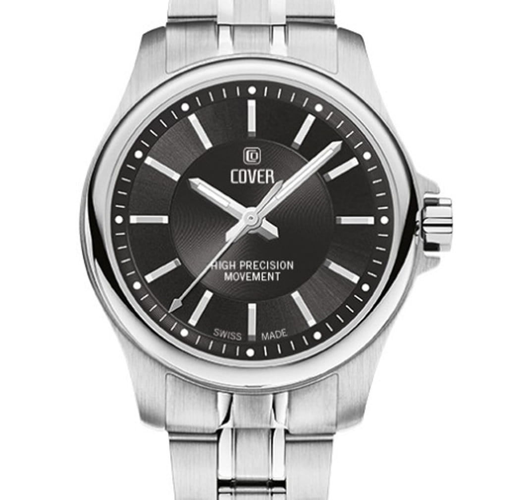 Женские наручные часы Cover CO201.01 из коллекции Marville сочетают в себе классический дизайн и высокую точность швейцарского производства. Модель обладает круглым корпусом диаметром 28 мм, изготовленным из нержавеющей стали, что придает изделию благородный внешний вид. Черный циферблат оснащен стрелками с люминесцентным покрытиемЛюминесцентное покрытиеПозволяет считывать показания времени в темноте. Производители наносят на стрелки, часовые индексы, безель или поверхность циферблата светонакопительный состав, дающий холодное свечение..  Для защиты используется сапфировое стеклоСапфировое стеклоПрочный и надёжный материал из кристалла сапфира синтетического происхождения, характеризующийся особой твёрдостью и устойчивостью к царапинам и повреждениям. с антибликовым покрытиемАнтибликовое покрытиеСлой оксида металла в 0,13-0,3 микрон, благодаря которому стекло часов не бликует и не отражает свет. Антибликовое покрытие уменьшает отражение света в 10 раз, обеспечивая отличную читаемость показателей циферблата., обеспечивающее прочную защиту от царапин и превосходную читаемость времени даже при ярком свете. Часы работают на высокоточном кварцевом механизме ETA, гарантирующем исключительную точность хода с погрешностью около 20 секунд в месяц. Браслет выполнен из нержавеющей стали и оснащен раскладной застежкойРаскладная застёжкаТакой тип застёжки используется только на браслетах из металла. Она никогда не раскрывается полностью, происходит разделение на 2 и более частей. Раскладывающая застёжка снизит вероятность потери часов к минимуму., обеспечивающей комфортное ношение и безопасность. Водонепроницаемость достигает 10 атмосфер (100 метров), что позволяет использовать их во время плавания и других водных видов спорта, однако не рекомендуется для глубоководного дайвинга. Эти швейцарские часы станут идеальным дополнением как классического, так и современного образа.