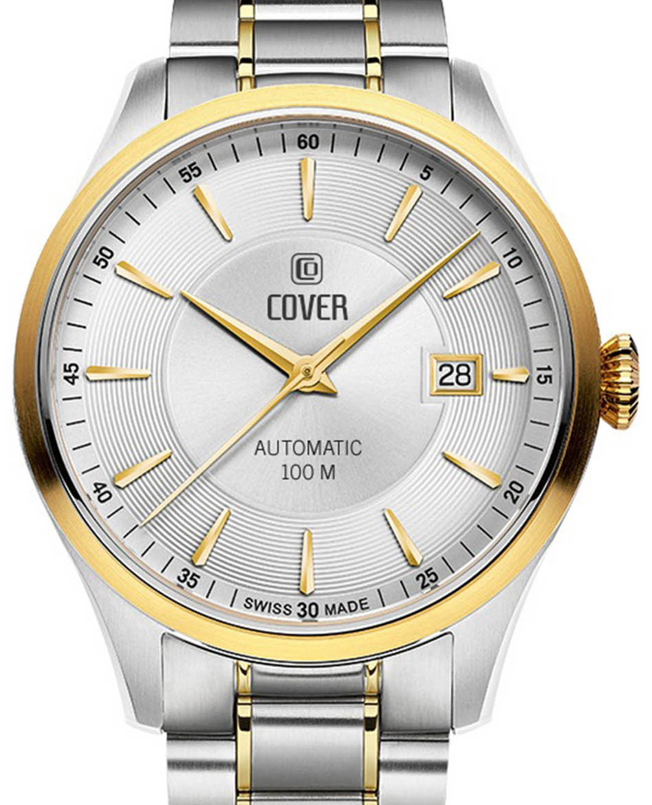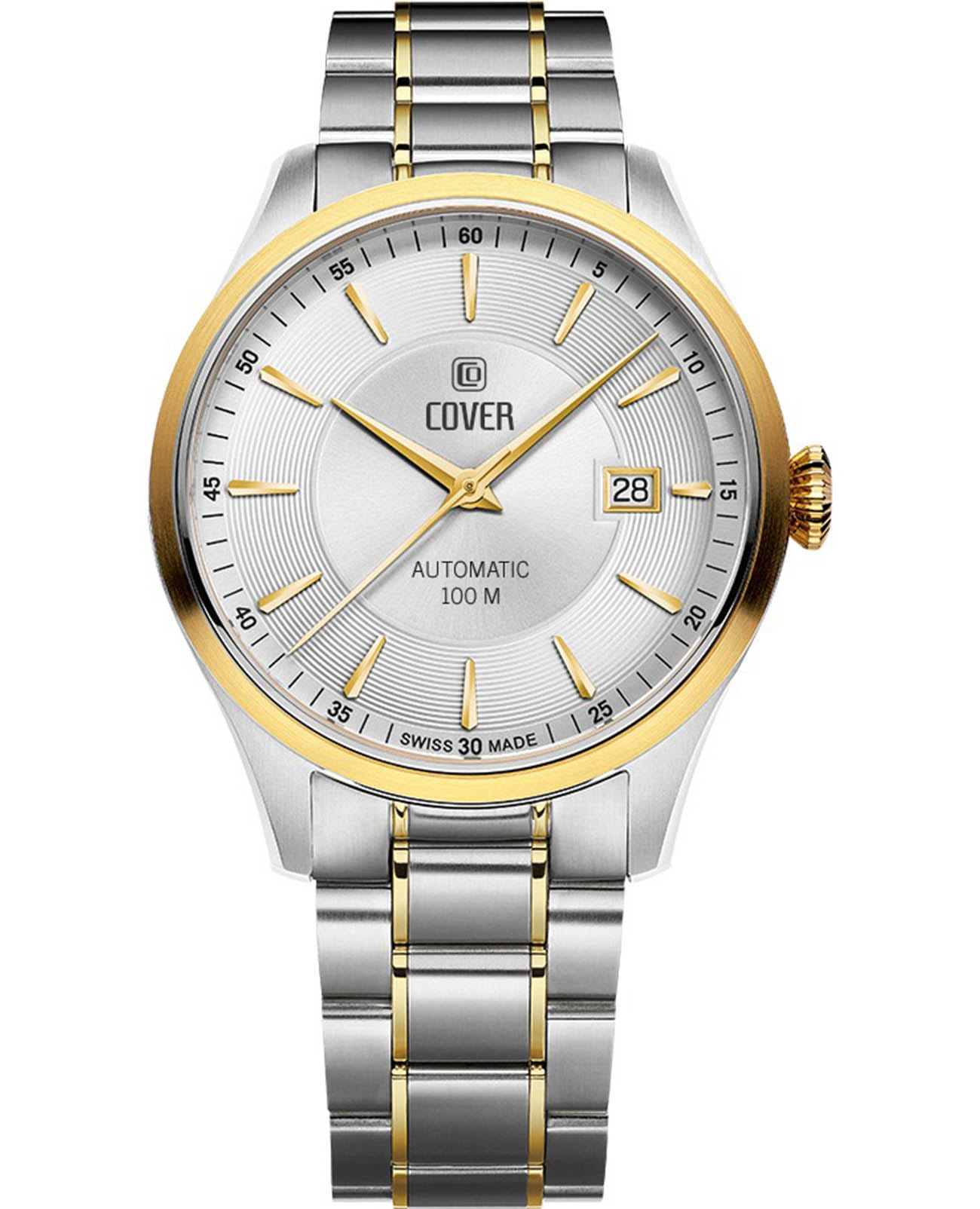 Часы COVER COA4.19 из коллекции  Aragon Automatict – элегантная модель швейцарского производства.  Эти часы станут идеальным аксессуаром для мужчин, которые ценят стиль и качество. Автоматический калибр ETA 2824-2 обеспечивает надёжную работу механизма. Центральная область серебристого циферблата декорирована узором Sunray, периферийная, с накладными гранеными индексами, – круговым гильоше. Браслет с раскладной застёжкойРаскладная застёжкаТакой тип застёжки используется только на браслетах из металла. Она никогда не раскрывается полностью, происходит разделение на 2 и более частей. Раскладывающая застёжка снизит вероятность потери часов к минимуму. и безельБезельВнешний ободок, закрепляющий стекло. В спортивных часах так называется поворотное кольцо с делениями на циферблате, выполняет роль таймера – замеряет отрезки времени на шкале. Неподвижный безель – элемент декора. Однонаправленно вращающийся безель на дайверских часах позволяет фиксировать моменты погружения и выныривания на поверхность. изготовлены из нержавеющей стали с PVDPVDУльтратонкое покрытие наносится в технике вакуумного напыления, сочетает в себе нитрид титана особой прочности со слоем золота или оксида хрома. Несёт в себе декоративную или защитную функцию. покрытием золотого цвета, корпус имеет диаметр 41 мм. Сапфировое стеклоСапфировое стеклоПрочный и надёжный материал из кристалла сапфира синтетического происхождения, характеризующийся особой твёрдостью и устойчивостью к царапинам и повреждениям. защищает поверхность от повреждений. Водозащита 100 метров делает часы практичными для повседневного использования Эти часы идеально подойдут для светских раутов, бизнес-встреч и других важных событий, подчеркивая ваш статус.