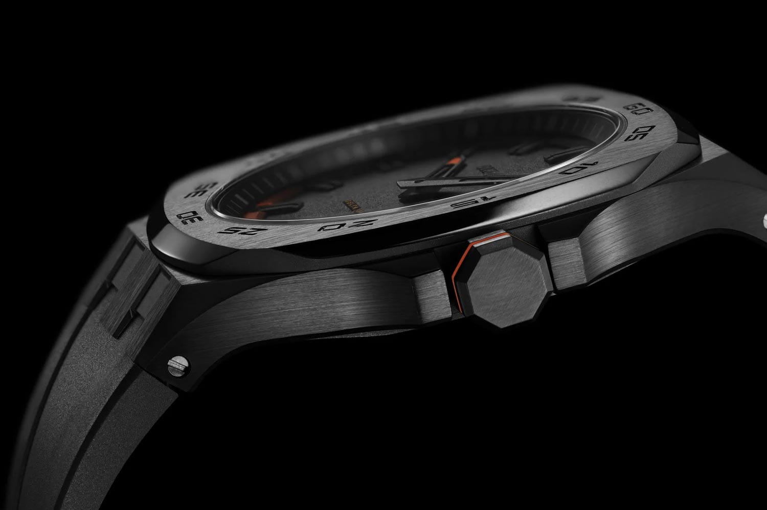 Мужские часы D1 Milano DTRJ03 из коллекции Delta 001 - воплощение современной мужественности. Часы с кварцевым механизмом Miyota GM17 имеют стальной корпус с черным PVD-покрытиемPVDУльтратонкое покрытие наносится в технике вакуумного напыления, сочетает в себе нитрид титана особой прочности со слоем золота или оксида хрома. Несёт в себе декоративную или защитную функцию., диаметром 41,5 мм и толщиной 8,7 мм. Циферблат черно-оранжевый с пескоструйной обработкой, с метками в виде штрихов. Окошко даты в положении 3 часа. Циферблат покрыт сапфировым стекломСапфировое стеклоПрочный и надёжный материал из кристалла сапфира синтетического происхождения, характеризующийся особой твёрдостью и устойчивостью к царапинам и повреждениям. с антибликовым покрытием. Водозащита часов - 50 метров (50WR) - позволит защитить корпус от случайных брызг или капель дождя. Задняя стальная крышка часов крепится на 4 винтах. Удобный каучуковый ремешок с классической застежкой завершает дизайн часов.