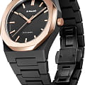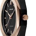 Часы D1 Milano Polycarbon PCBJ15 – молодежные часы в стиле унисекс для повседневных образов. Модель Gloaming имеет черный корпус из поликарбоната с покрытием Софт-Тач. Стальной безельБезельВнешний ободок, закрепляющий стекло. В спортивных часах так называется поворотное кольцо с делениями на циферблате, выполняет роль таймера – замеряет отрезки времени на шкале. Неподвижный безель – элемент декора. Однонаправленно вращающийся безель на дайверских часах позволяет фиксировать моменты погружения и выныривания на поверхность. с PVD-покрытиемPVDУльтратонкое покрытие наносится в технике вакуумного напыления, сочетает в себе нитрид титана особой прочности со слоем золота или оксида хрома. Несёт в себе декоративную или защитную функцию. цвета розового золота. Циферблат лаконичный с индексами в виде штрихов, защищен минеральным стекломМинеральное стеклоМинеральное стекло представляет собой искусственно выращенный минерал кварца. Такое стекло отличается особой устойчивостью к повреждениям и царапинам. Уступает по некоторым качествам сапфировому стеклу. с антибликовым покрытием. Стрелки с люминесцентным покрытиемЛюминесцентное покрытиеПозволяет считывать показания времени в темноте. Производители наносят на стрелки, часовые индексы, безель или поверхность циферблата светонакопительный состав, дающий холодное свечение., светятся в темноте. Стальная задняя крышка на 4 винтах. Пластиковый браслет с раскладной застёжкойРаскладная застёжкаТакой тип застёжки используется только на браслетах из металла. Она никогда не раскрывается полностью, происходит разделение на 2 и более частей. Раскладывающая застёжка снизит вероятность потери часов к минимуму..