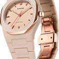 Часы D1 Milano Polycarbon PCBU15 – современные часы в стиле унисекс для повседневных образов. Модель Akebia Mesh имеет бежевый корпус из поликарбоната с покрытием Софт-Тач и полированный стальной безельБезельВнешний ободок, закрепляющий стекло. В спортивных часах так называется поворотное кольцо с делениями на циферблате, выполняет роль таймера – замеряет отрезки времени на шкале. Неподвижный безель – элемент декора. Однонаправленно вращающийся безель на дайверских часах позволяет фиксировать моменты погружения и выныривания на поверхность. с розовым PVD-покрытиемPVDУльтратонкое покрытие наносится в технике вакуумного напыления, сочетает в себе нитрид титана особой прочности со слоем золота или оксида хрома. Несёт в себе декоративную или защитную функцию. и бежевой эмалью. Циферблат лаконичный с индексами в виде штрихов, защищен минеральным стекломМинеральное стеклоМинеральное стекло представляет собой искусственно выращенный минерал кварца. Такое стекло отличается особой устойчивостью к повреждениям и царапинам. Уступает по некоторым качествам сапфировому стеклу. с антибликовым покрытием. Стальная задняя крышка на 4 винтах. Пластиковый браслет из поликарбоната с покрытием Софт-Тач на застёжке-бабочке с кнопкамиЗастёжка "бабочка"Такой вид застёжки дополняется предохранителями, помогающими избежать случайного раскрытия браслета. Обладают изящным исполнением. . Для тех, кто умеет ценить индивидуальность.