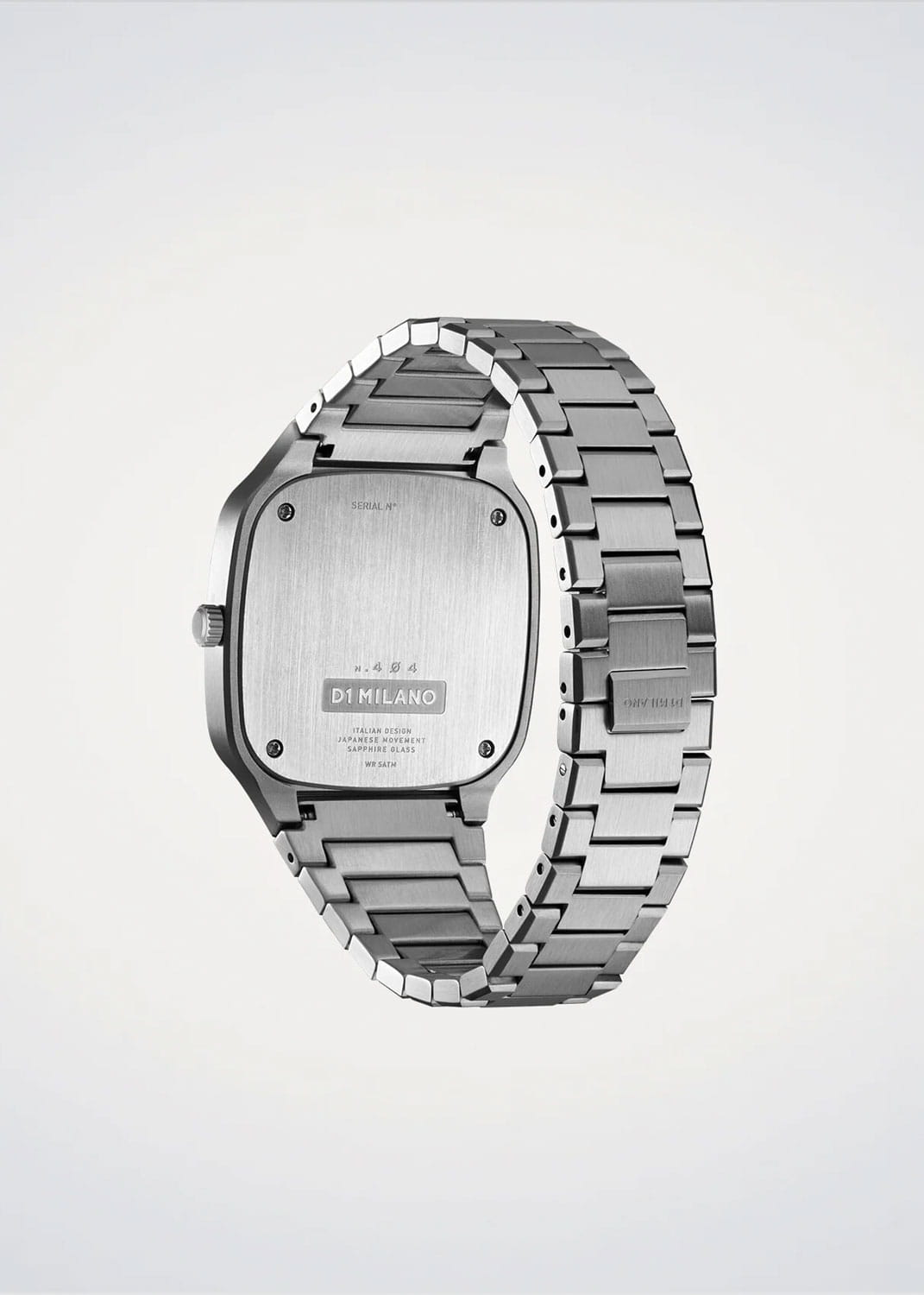 Часы D1 Milano Square SQBJ05 — это воплощение современной элегантности, вдохновленной классическими традициями. Эти кварцевые часы впечатляют своим уникальным дизайном и высоким качеством исполнения. Квадратный корпус из нержавеющей стали размером 37х37 мм и толщиной 6,45 мм. Циферблат защищен сапфировым стекломСапфировое стеклоПрочный и надёжный материал из кристалла сапфира синтетического происхождения, характеризующийся особой твёрдостью и устойчивостью к царапинам и повреждениям. с антибликовым покрытиемАнтибликовое покрытиеСлой оксида металла в 0,13-0,3 микрон, благодаря которому стекло часов не бликует и не отражает свет. Антибликовое покрытие уменьшает отражение света в 10 раз, обеспечивая отличную читаемость показателей циферблата., метки в виде штрихов добавляют дизайну лаконичности и изысканности. Стальной браслет на застёжке-бабочке с кнопкамиЗастёжка "бабочка"Такой вид застёжки дополняется предохранителями, помогающими избежать случайного раскрытия браслета. Обладают изящным исполнением. обеспечивает надежность и комфорт при носке. Стрелки с люминесцентным покрытиемЛюминесцентное покрытиеПозволяет считывать показания времени в темноте. Производители наносят на стрелки, часовые индексы, безель или поверхность циферблата светонакопительный состав, дающий холодное свечение.. Водозащита до 50WR гарантирует защиту от влаги в повседневных условиях. Эти итальянские часы представляют собой идеальное сочетание традиционного мастерства и инновационного подхода, воплощая в себе новый взгляд на классическую элегантность.